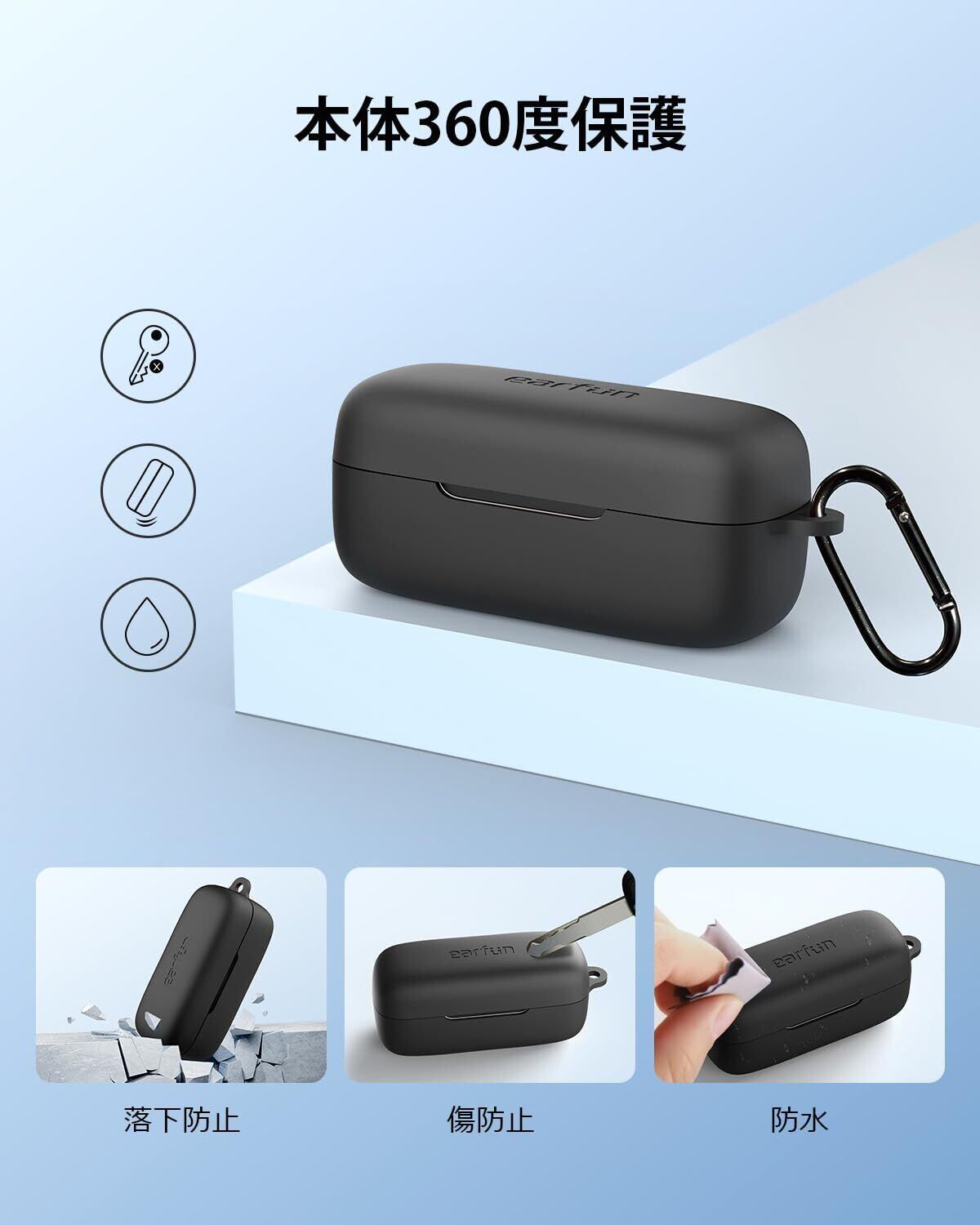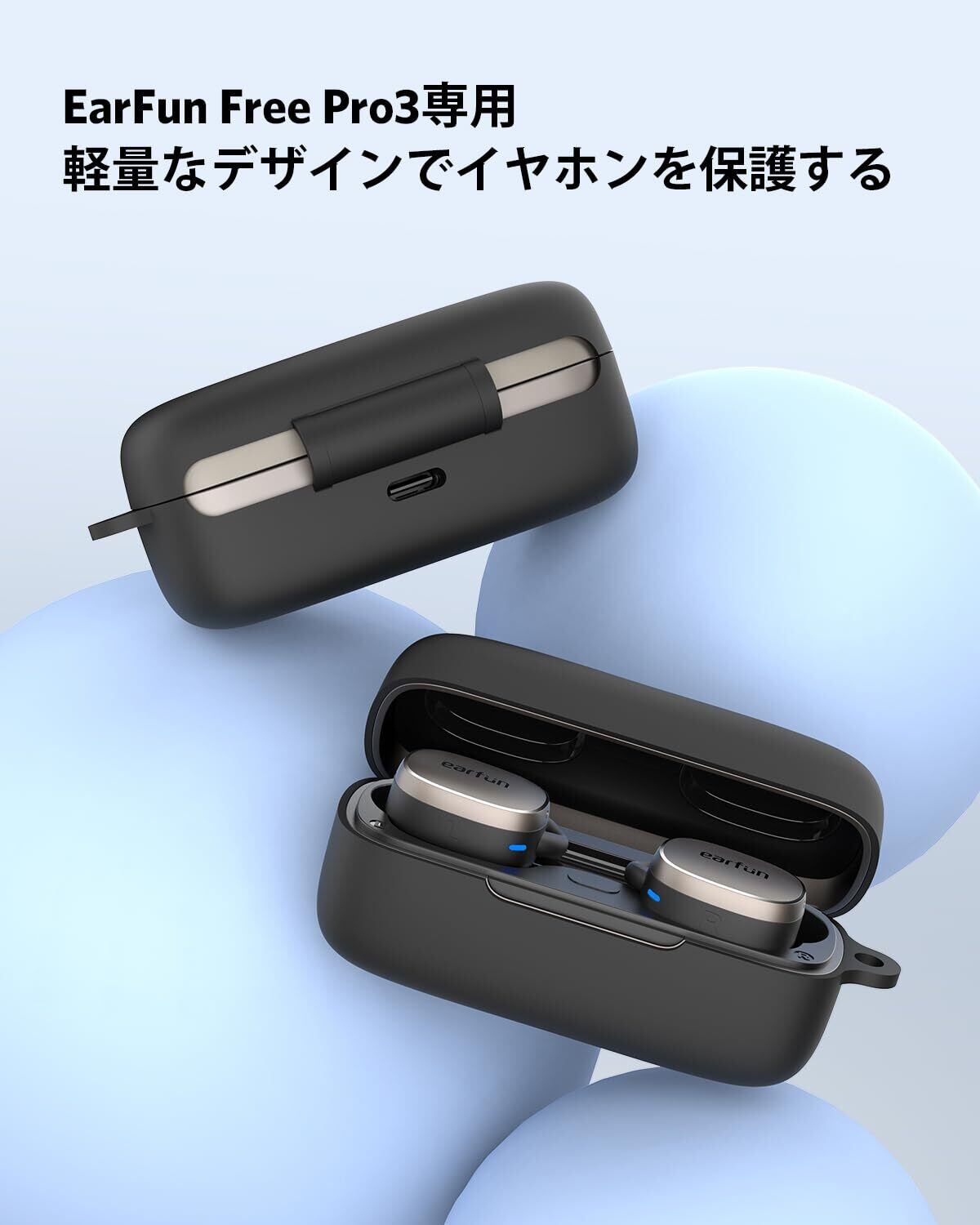 【EarFun正規品】For EarFun Free Pro 3ケース保護カバー シリコン/装着充電可能/全面保護 落下・キズ防止/耐衝撃/防塵/軽量/収納/カラビナ付き (ブラック)