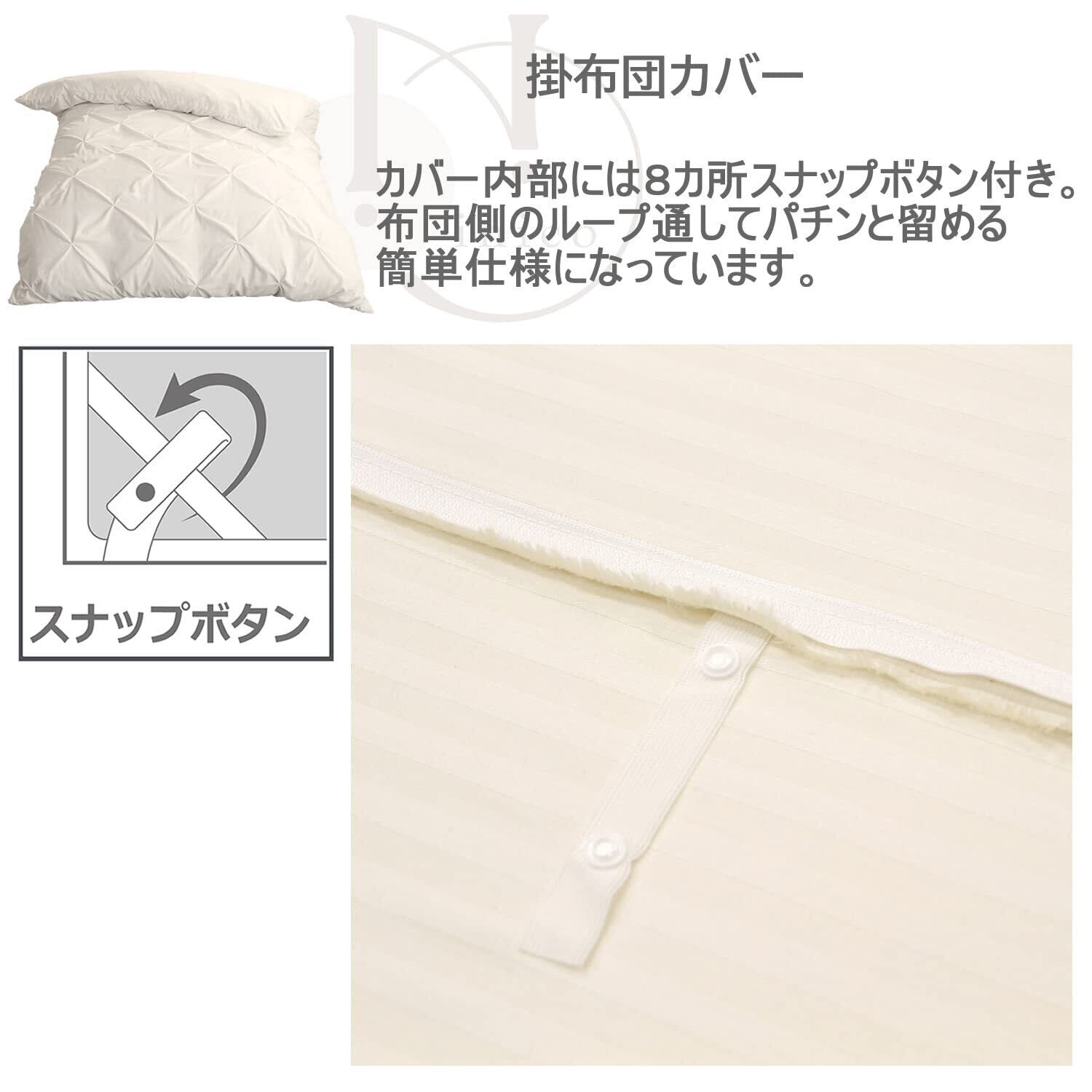 カバー内部には8カ所スナップボタン付き。布団側のループ通してパチンと留める簡単仕様になっています。