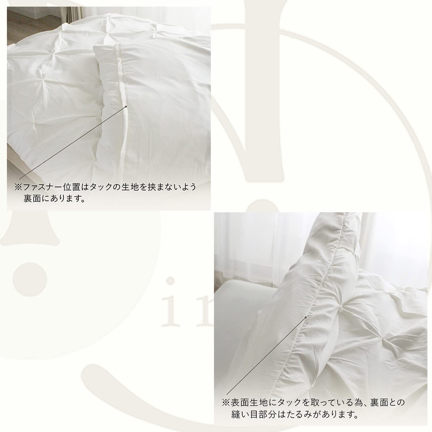 カバーサイズは190×210㎝の掛布団用。(表面生地にタックを取っている為、裏面とのカバーの縫い目部分はたるみが出てヨレた加工になります。またファスナー位置はタックの生地を挟まないよう裏面になっております。)