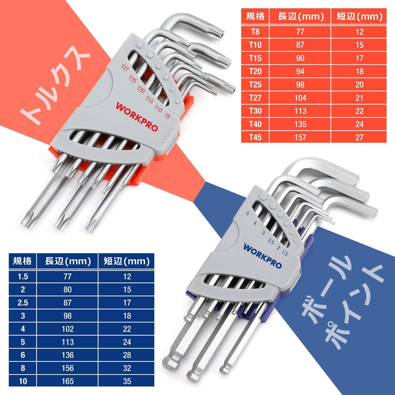 WORKPRO 六角レンチセット 18本組 六角レンチ いじり止めトルクスレンチ ヘックスローブレンチ トルクスレンチセット 先端ボールポイント加工 L形レンチ ホルダータイプ 家具組み立て 自転車 修理 メンテナンス 整備工具