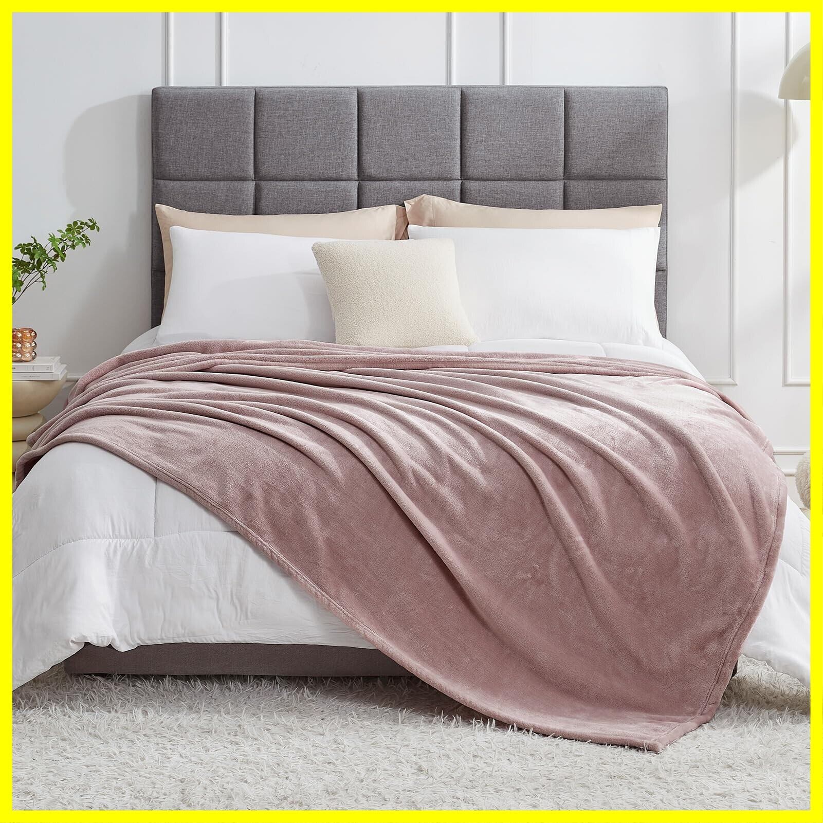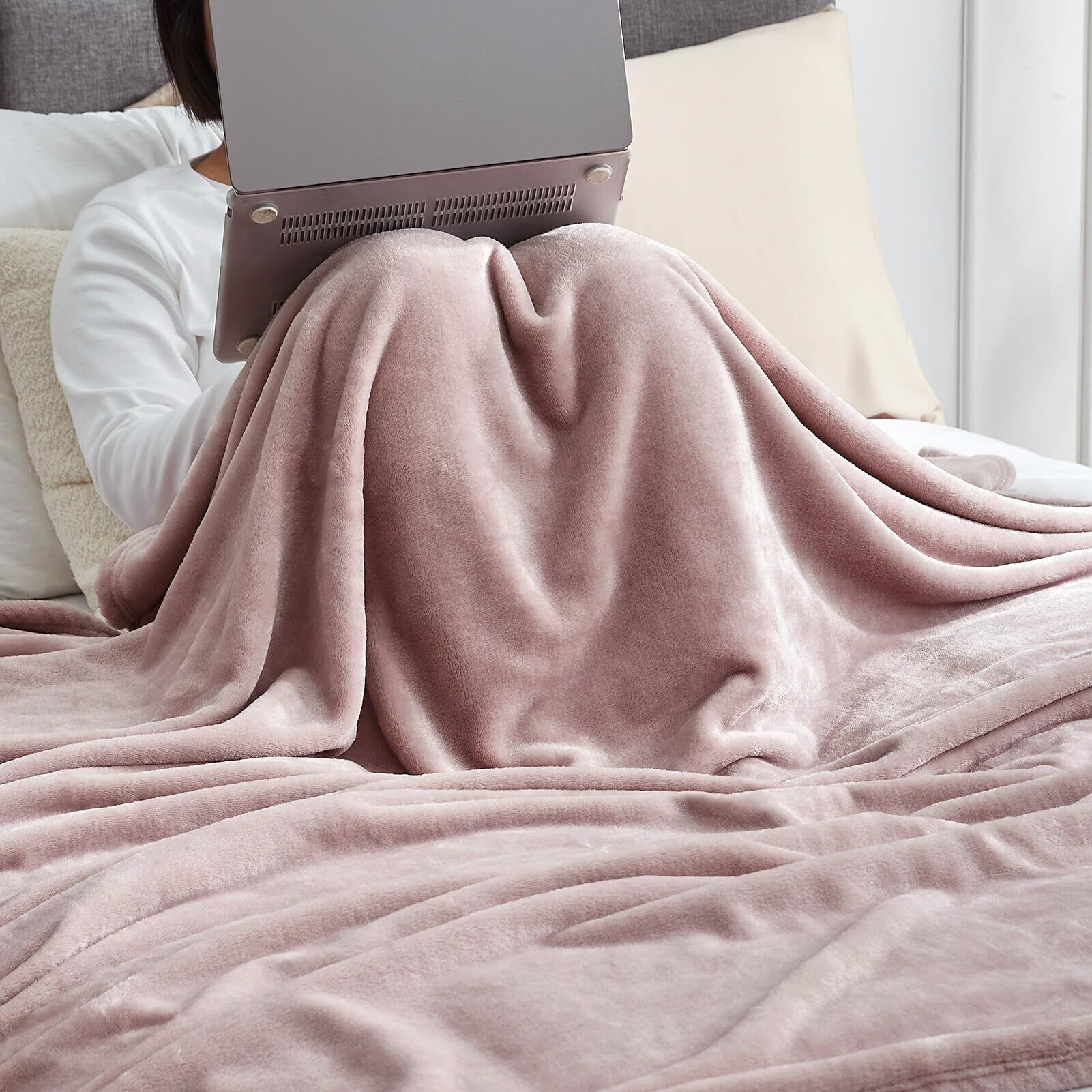 Hansleep 毛布 もうふ 夏用 ダブル ブランケット 大きめ 200x220cm 大判 スモーキーピンク マイクロファイバー 柔らかく 肌触り フランネル 洗える 軽量 静電防止 四季適用 (200x220,スモーキーピンク)