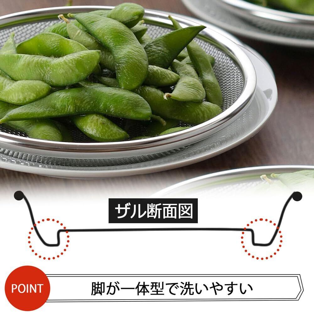 下村企販 ざる 水切り 浅ザル 3枚組 【日本製】 食洗機対応 食材の小分け 下ごしらえに便利 脚付き 平ざる 野菜 ステンレス セット ママクック 43024