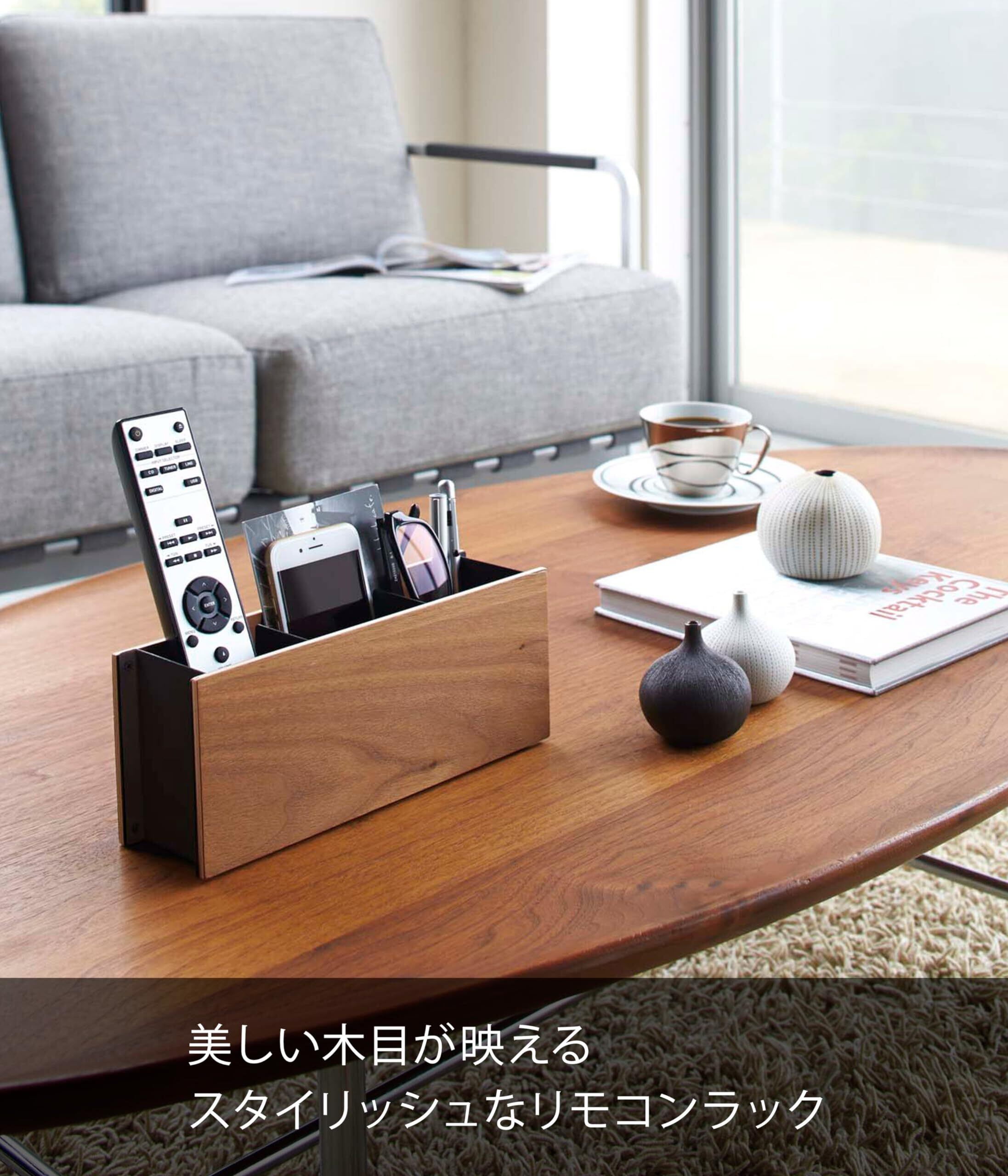 美しい木目でインテリア性のあるスタイリッシュで使い易いリモコンラック。仕切りの隙間にDMなども収納可能。