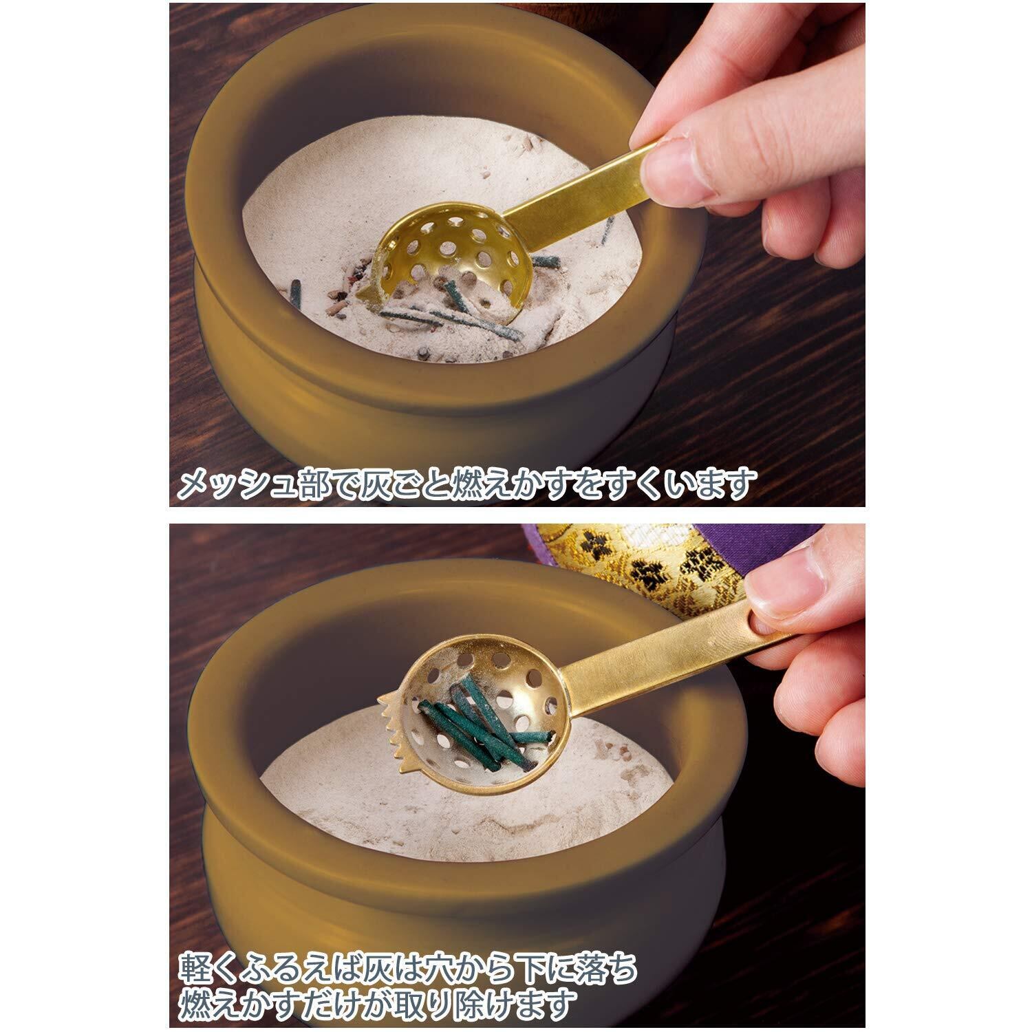 コモライフ 真鍮製の燃えかす取り 燃えかす 掃除 真鍮 灰ならし 灰ふるい 仏具 仏壇 香炉 燭台 お線香
