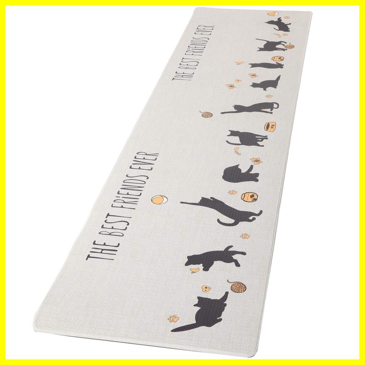Ashmore キッチンマット 拭ける台所マ ット ずれない PVCロング床マット 撥水 おしゃれ 滑り止め 抗菌 防炎 厚さ10mm お手入れ簡単 約45cm*180cm 猫