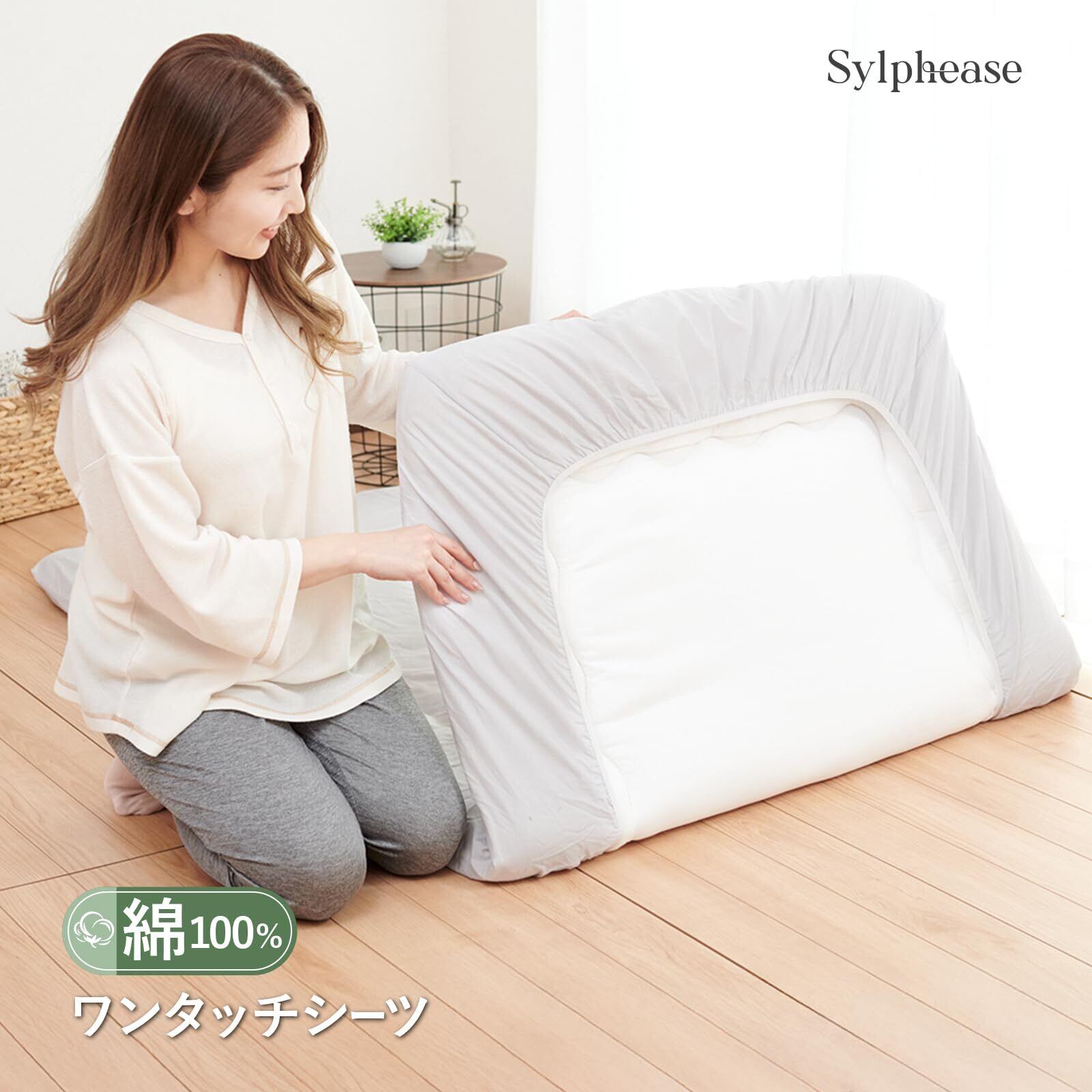 【肌に優しい綿100%】こだわり綿100%のやわらかいコットン生地を使ったシルフィーズおすすめのお手軽なワンタッチシーツです。