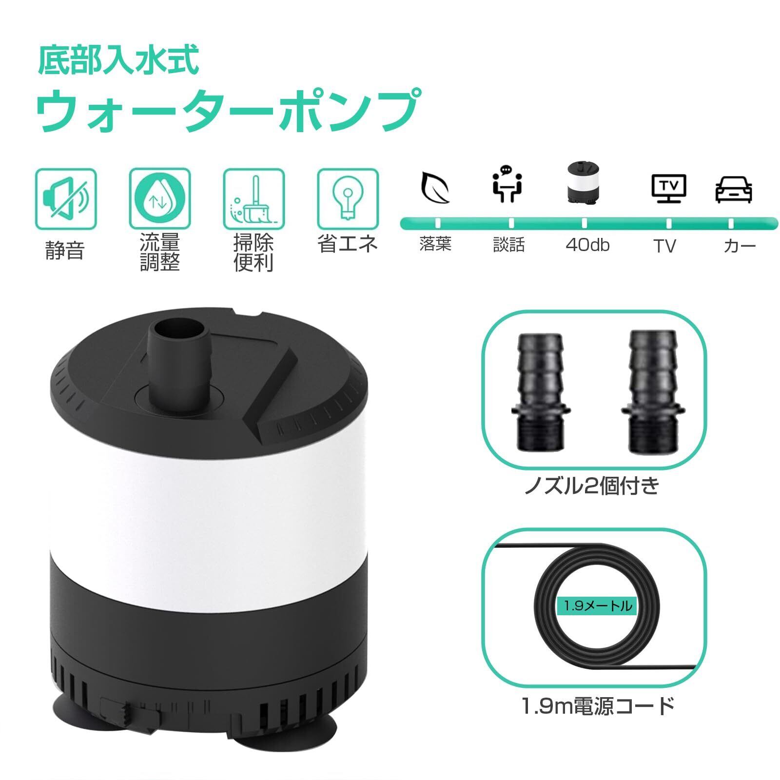 水中ポンプ 低水位対応 THYESCOM 小型循環ポンプ 給水ポンプ 流量調整可能ウォーターポンプ 吐出量2500L/H 最大揚程2.5M 静音設計排水ポンプ 水耕栽培水族館水換え 養殖場適用 40W