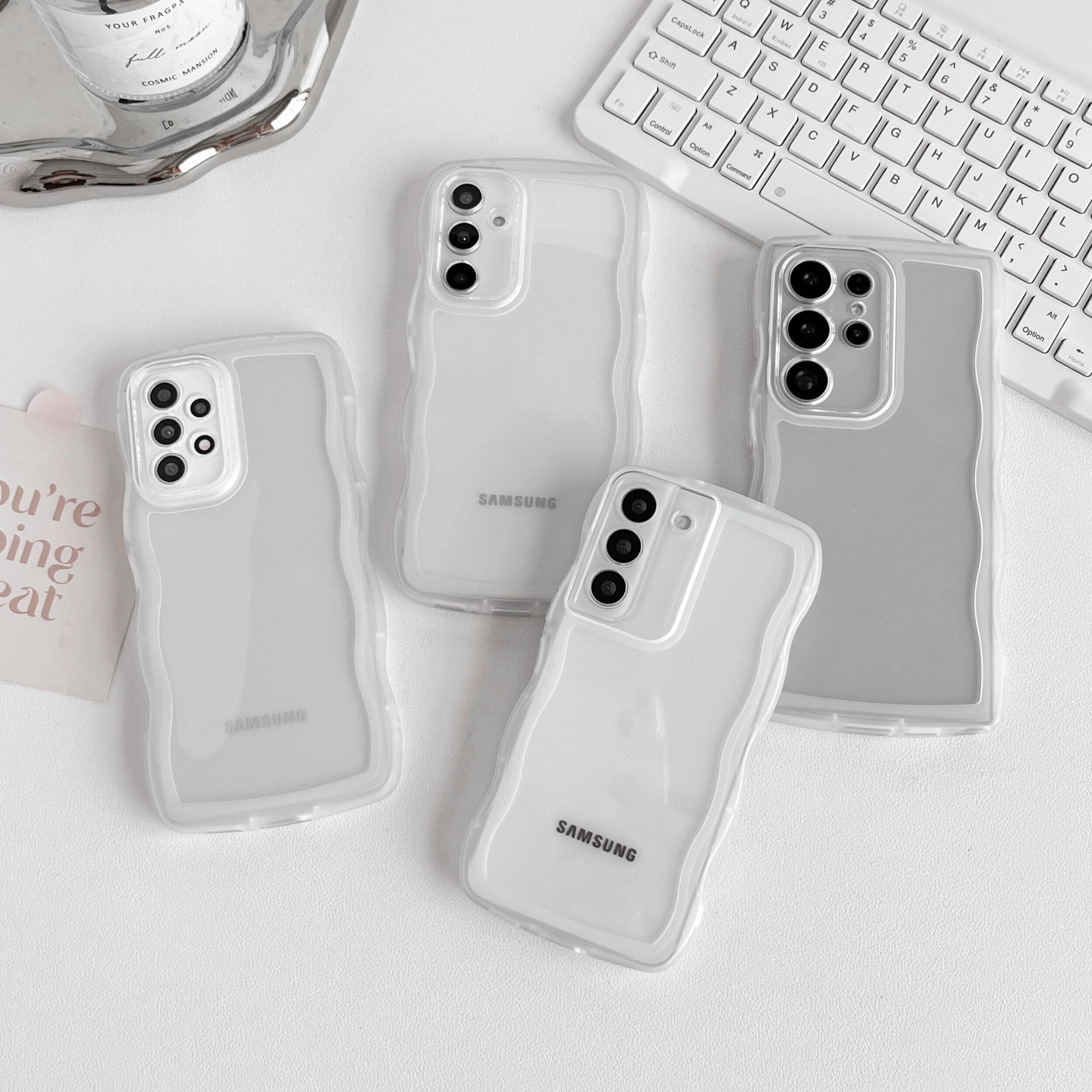 ZTOFERA Samsung Galaxy A52/A52S 4G/5G ケース用、クリア透明可愛いうねうね波状フレームおしゃれデザイン、ソフトTPU滑り止め傷防止耐衝撃性の電話カバーSamsung A52/A52S ケース用、白い
