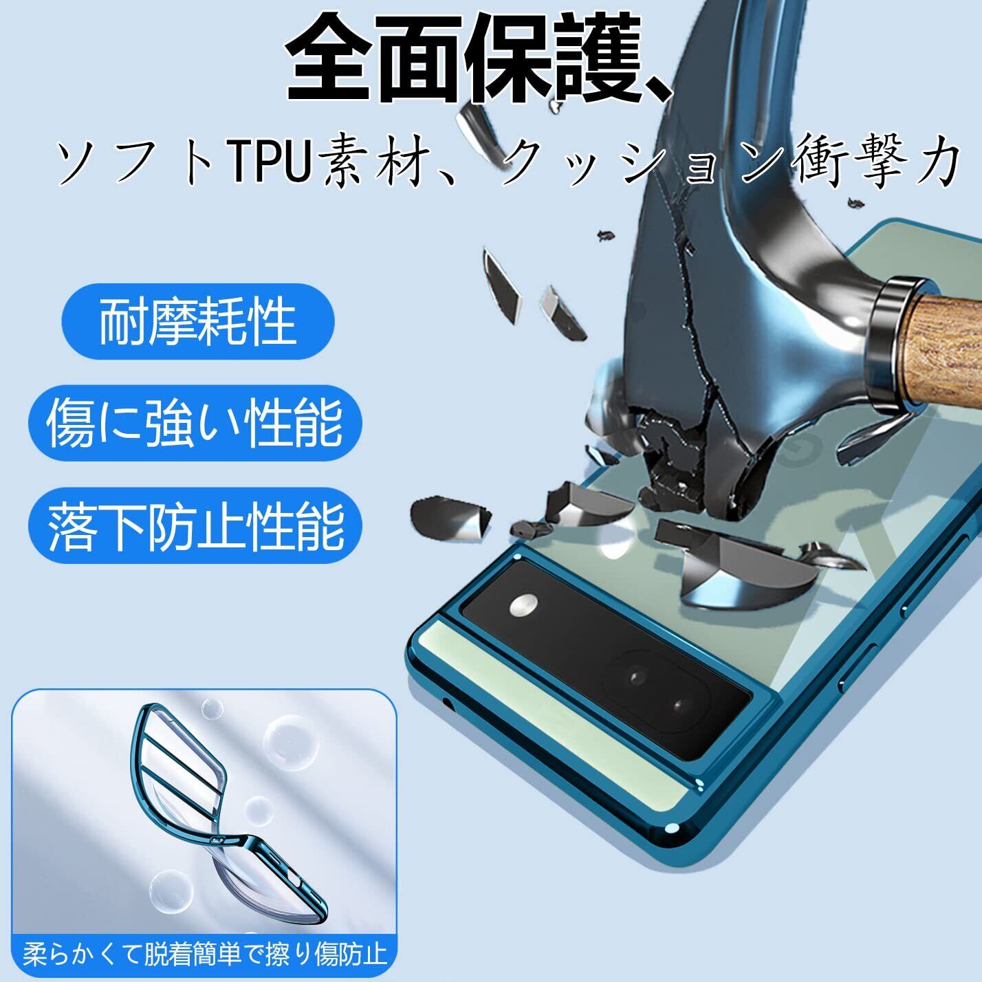 Google Pixel6A ケース クリア グーグル ピクセル 6A スマホケース TPU素材 薄型 耐衝撃 カバー ストラップホール付き 落下防止 滑り止め (ブルー)
