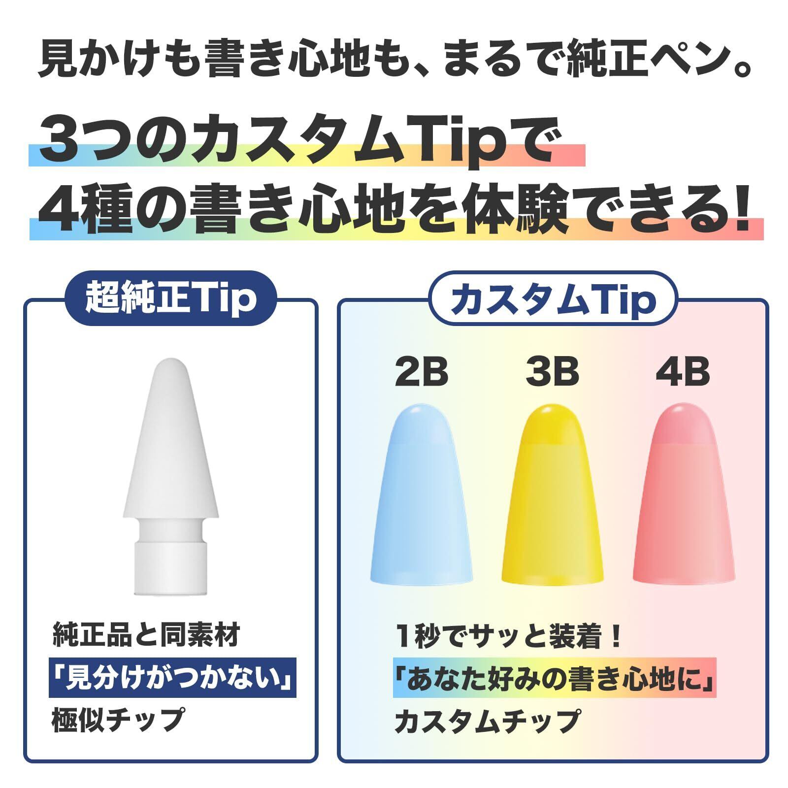 Apple Pencil ペン先 交換用 【アップルペンシル第1世代、第2世代、USB-C、Pro対応】 純正品と同じ素材を使用し、⾒かけも書き⼼地もまるで、純正ペン!さらに3つのカスタムチップで、4種の描き⼼地を体験できる! Pencil Tips Real Feel