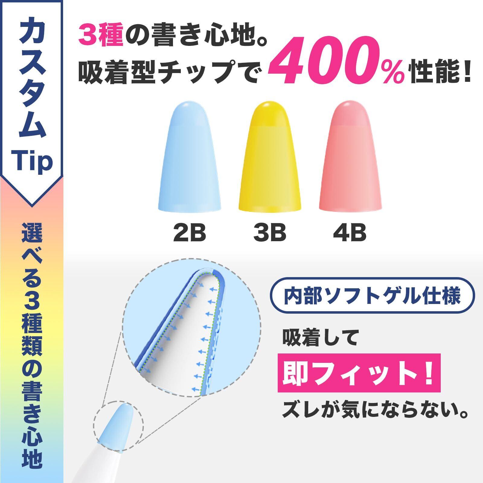 【3つのカスタムTip】ペン先に装着できる2B・3B・4Bの計3種類の吸着式チップが付属し、用途に合わせてあなた好みの書き心地を選べる!