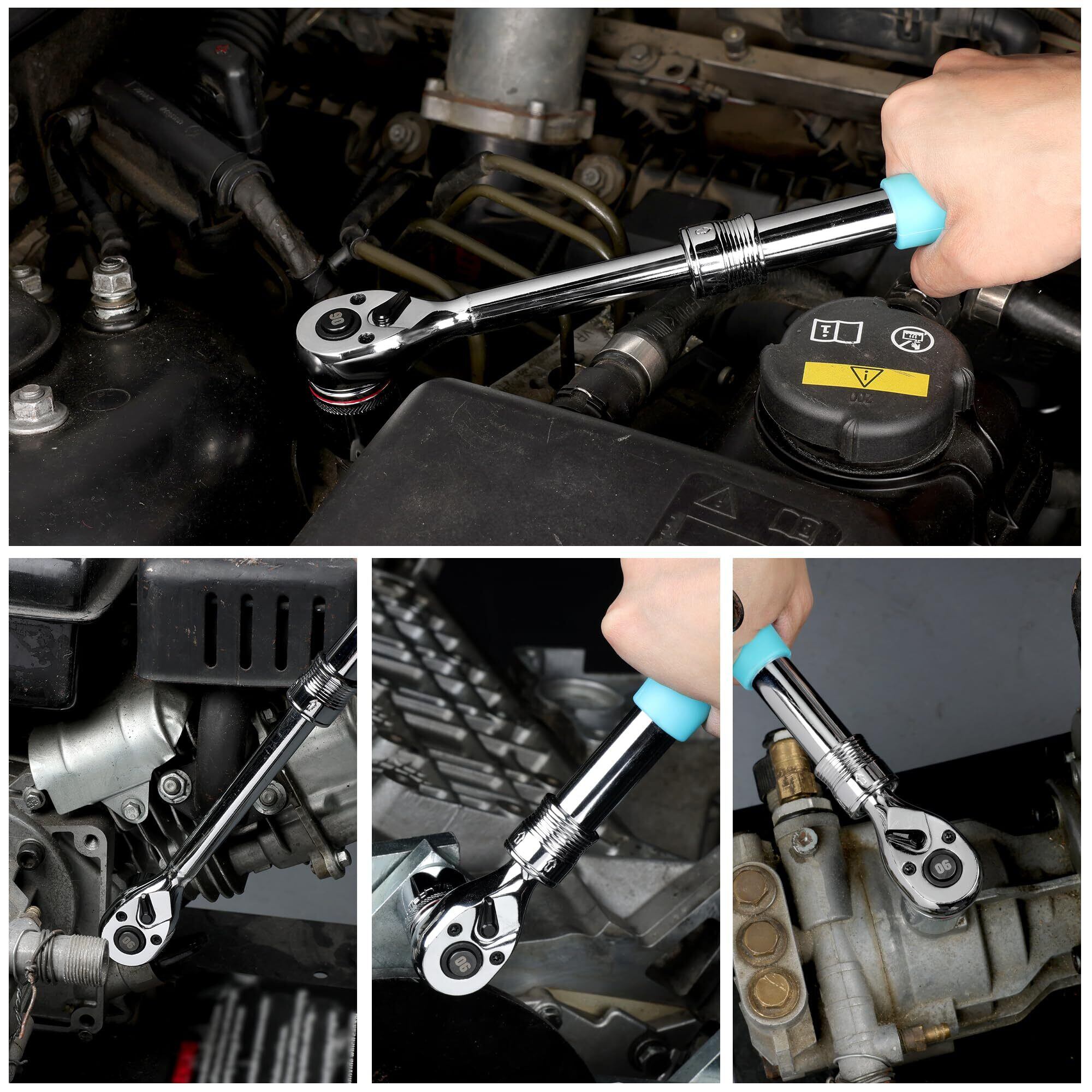 【材質】ラチェットハンドルは高品質なクロームバナジウム鋼を採用し、硬度と耐久性が優れ、錆びにくく長持ちします。