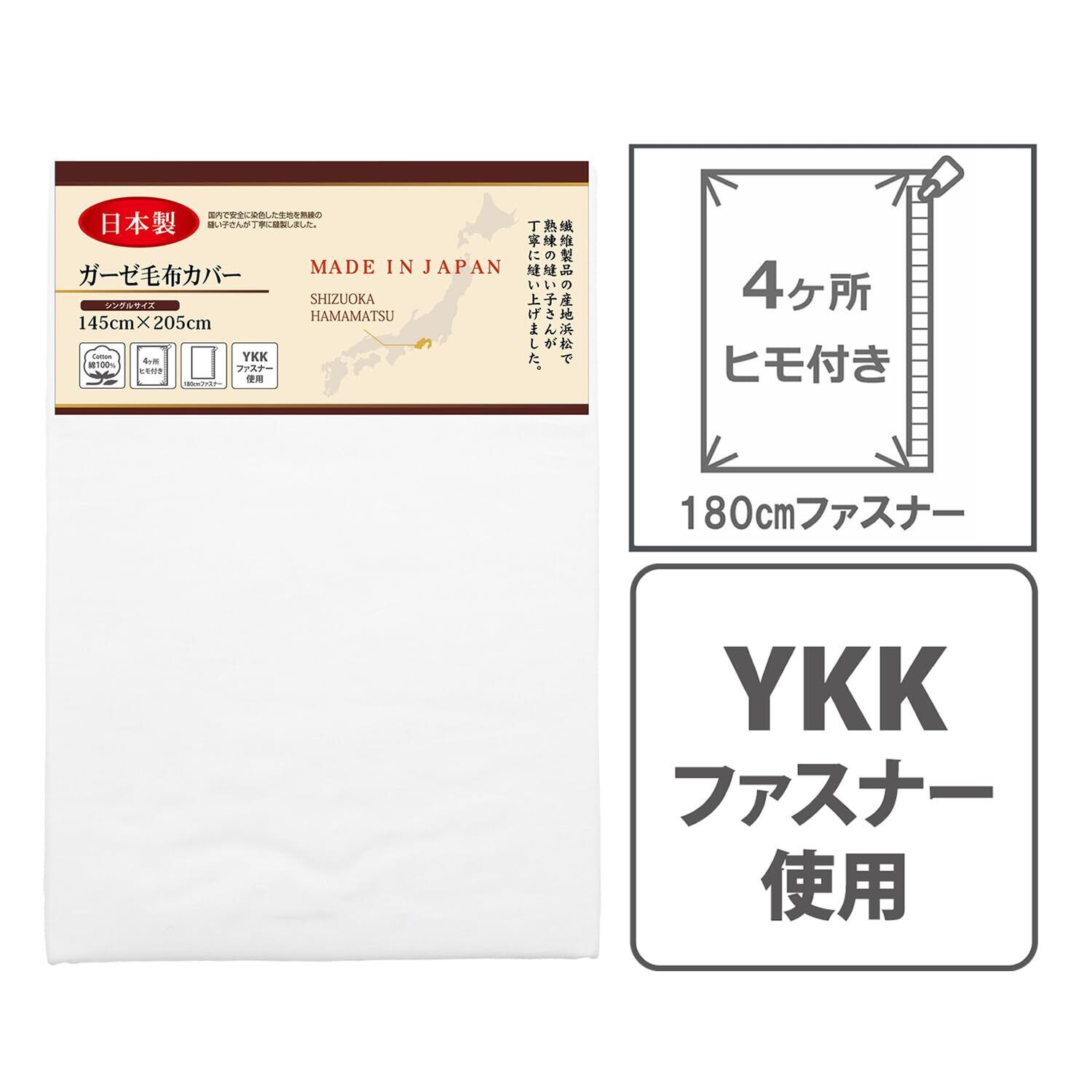 メリーナイト 毛布カバー ガーゼ ホワイト シングル 約145×205cm 日本製 綿100% 軽量 通気性 ふんわりやさしい肌触り 吸水性 洗える すぐ乾く 衛生的 清潔 毛布の毛羽の飛散を防ぐ 秋冬寝具 5241-06