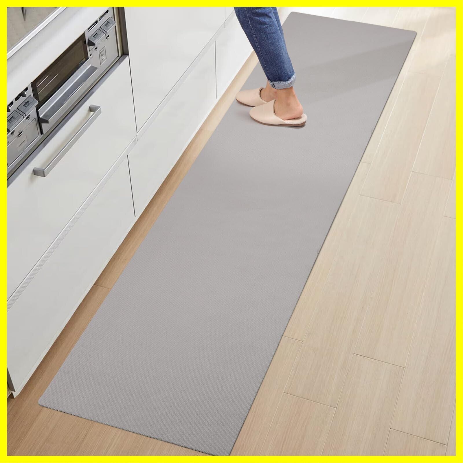 Tydle 拭ける!キッチンマット 44×180cm 低反発 厚さ6mm 洗濯不要 滑り止め PVCキッチンマット クッション性のあるPVC素材 お手入れ簡単 PVCマット 滑り止め ずれにくい 台所マット 拭けるキッチンマット 柔らかな踏み心地 グレー