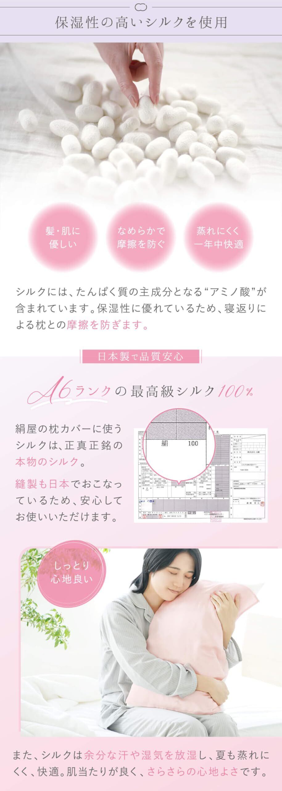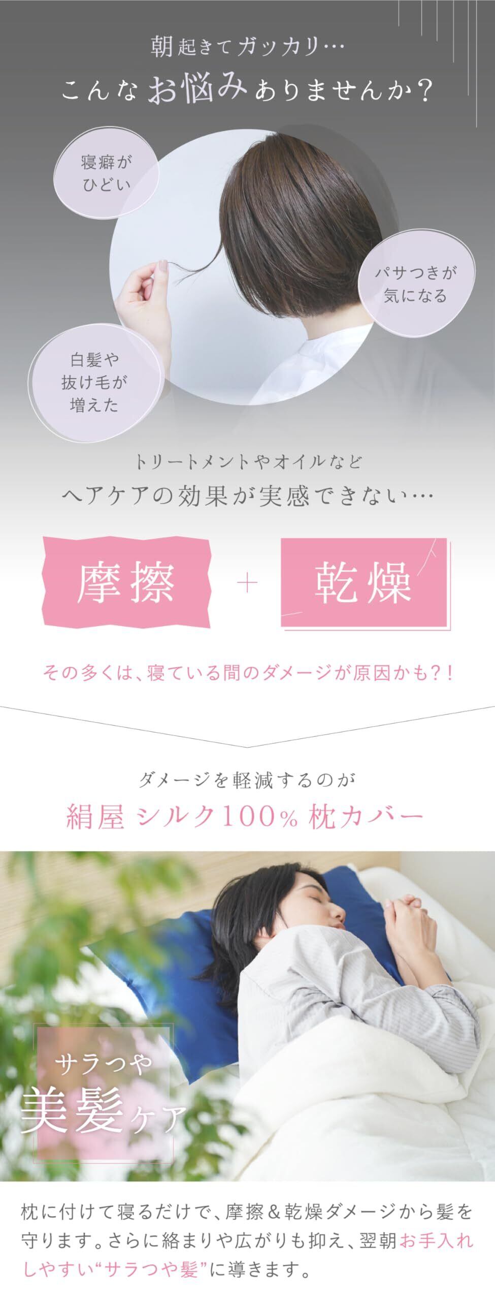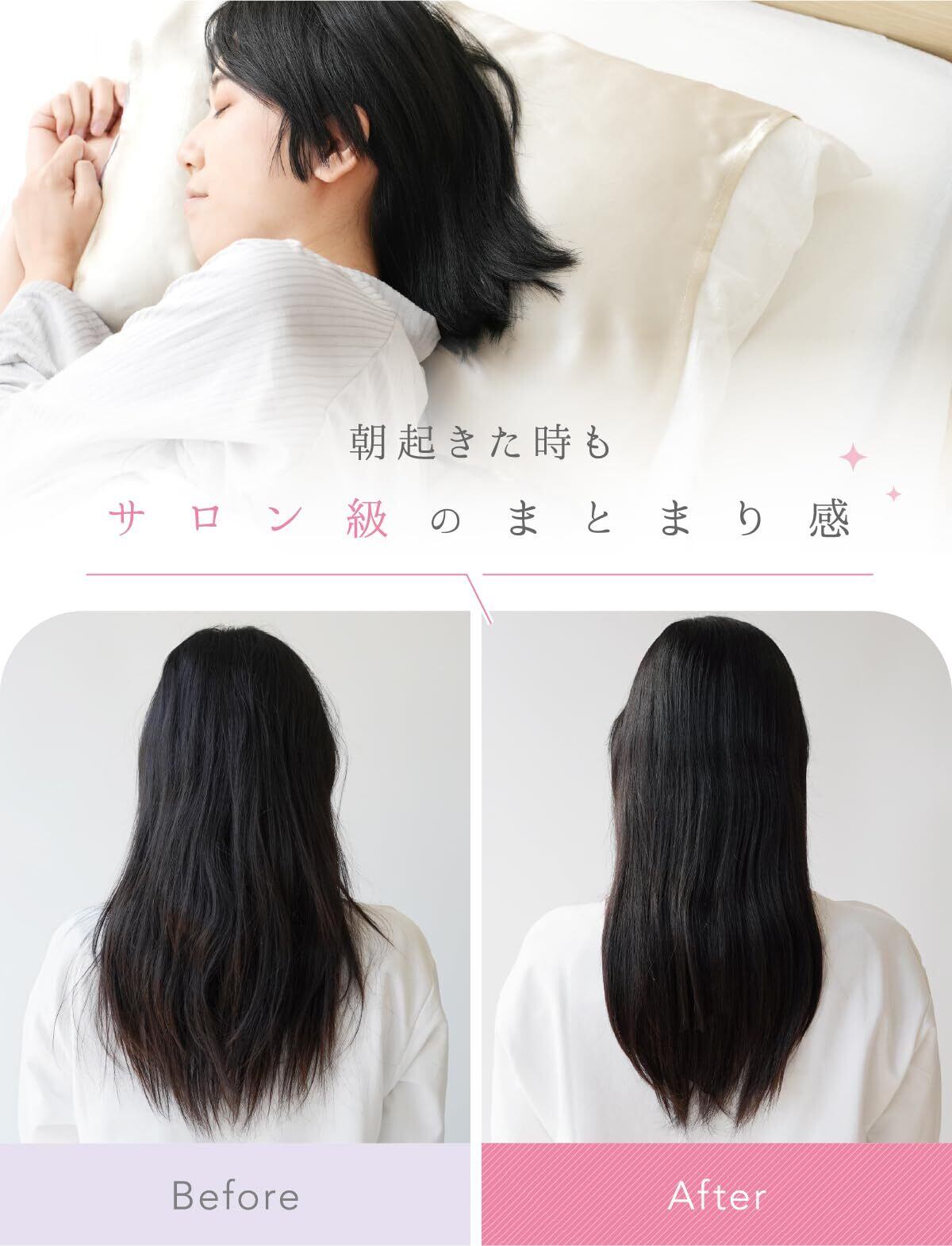 寝ている時の髪の毛を摩擦や乾燥から守り、潤いのある美しい肌髪に効果的です。
