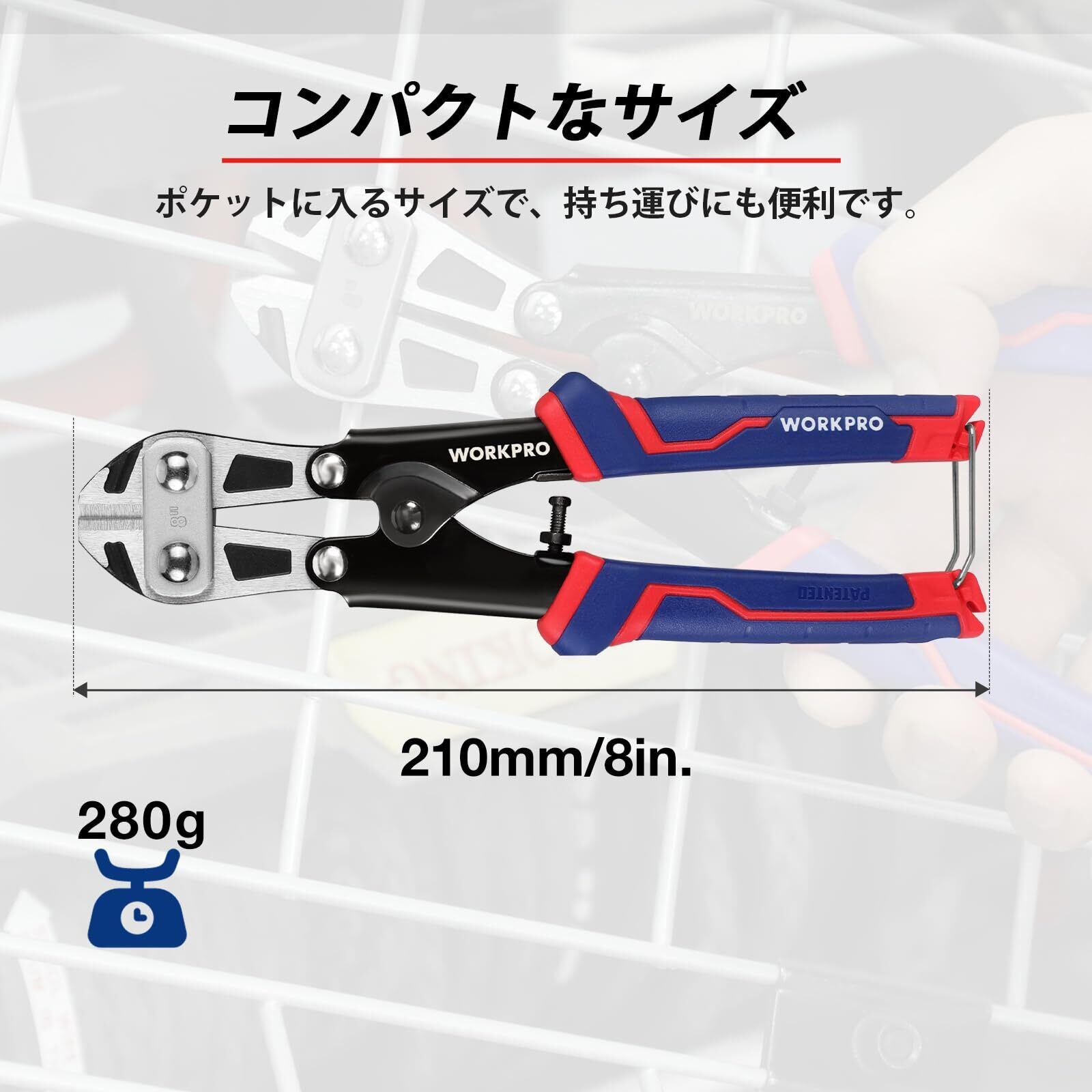 WORKPRO ボルトクリッパ ー ボルトカッター ワイヤーカッター ミゼットカッター200mm 硬鋼線カッター 滑り止めハンドル CR-V鋼 ボルト ねじ棒切断用 切断工具 操作便利