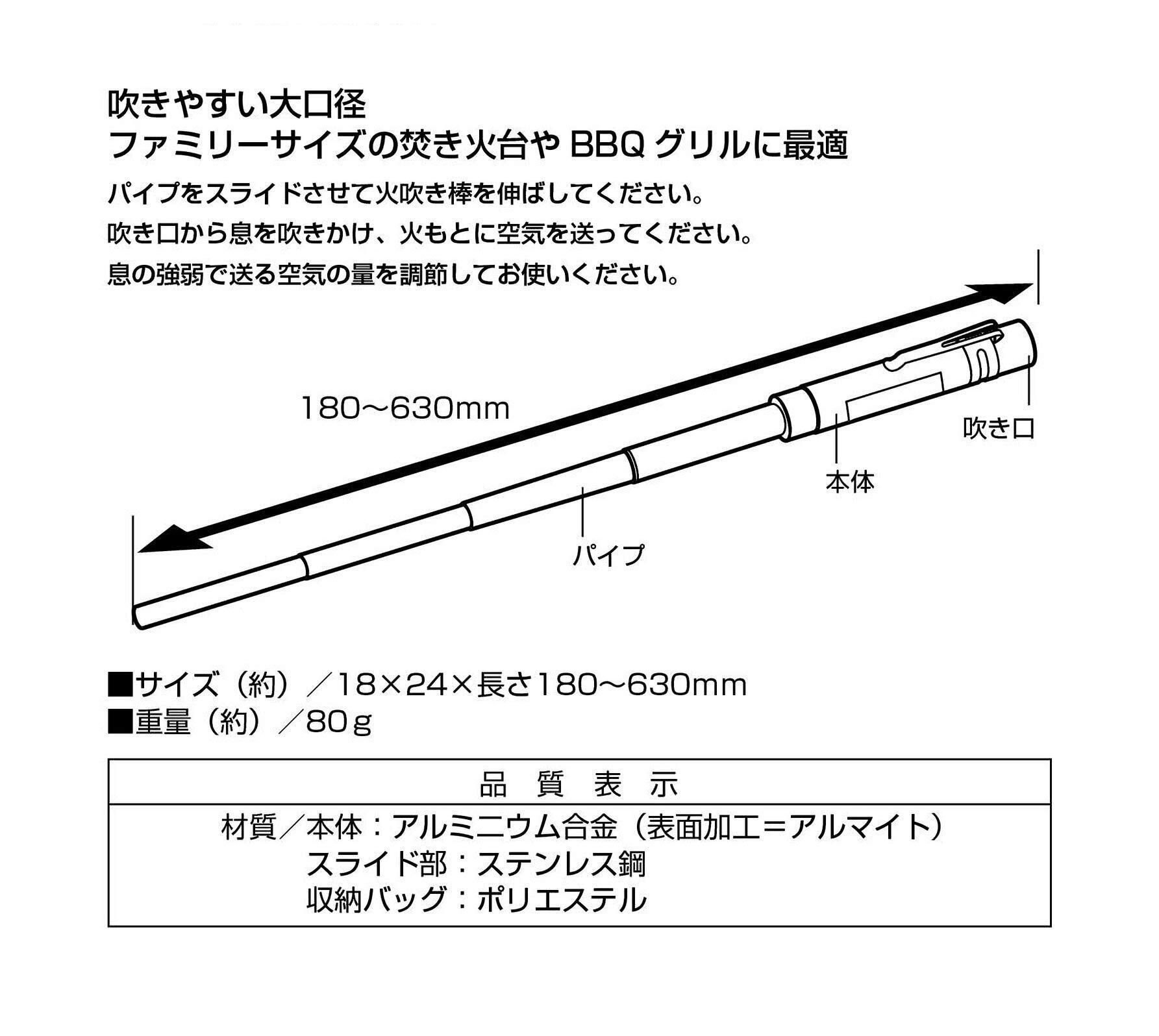 キャプテンスタッグ(CAPTAIN STAG) ふいご 火吹き棒 火起こし 送風機 伸縮式 スライド火吹き棒 クリップ付き 収納袋付き UG-3258/UG-3283