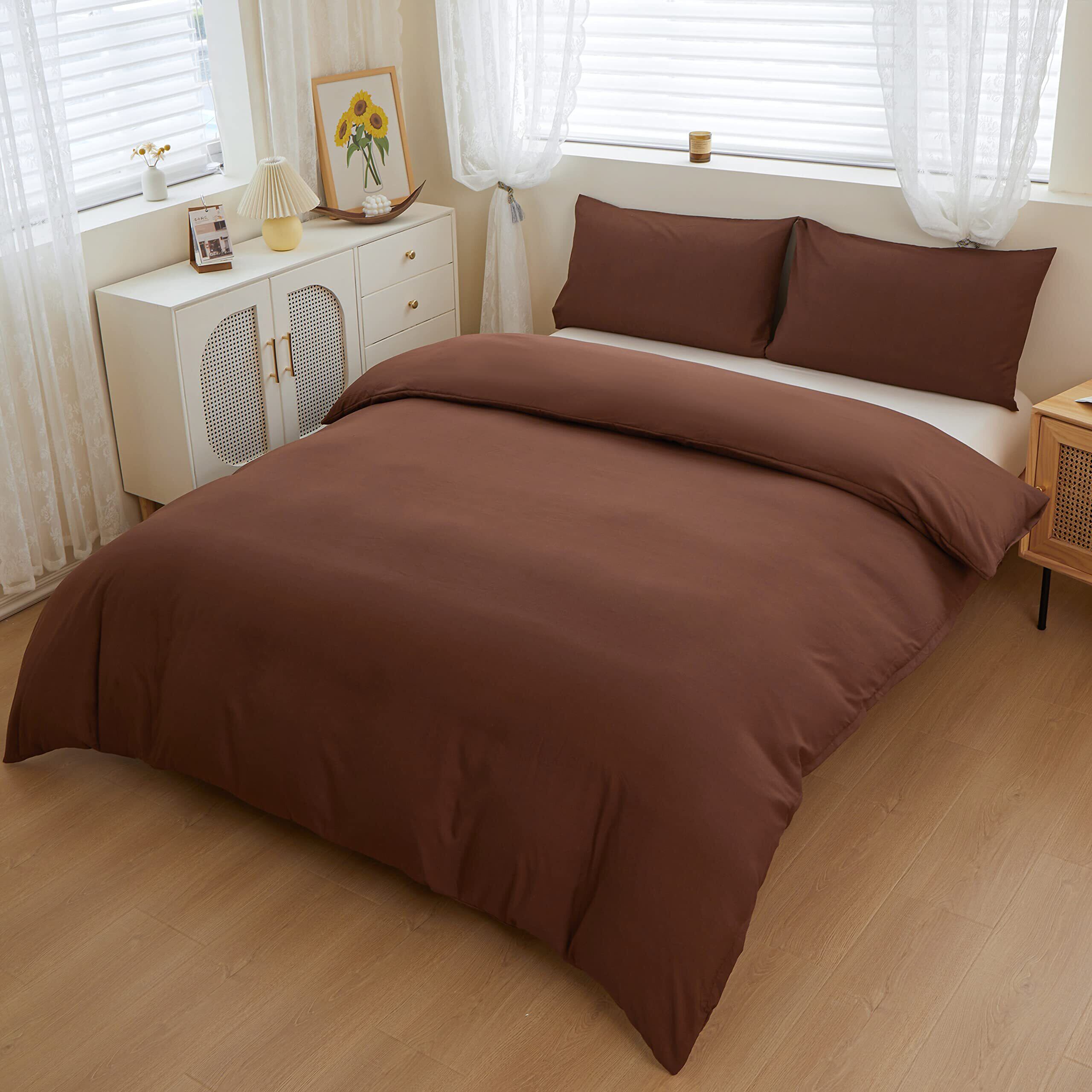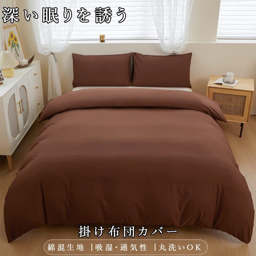 掛け布団カバー シングル 布団カバー 掛けふとんカバー 速乾 かけ布団カバー 洋式・和式兼用 布団カバー 掛けカバー 抗菌防臭 4ヶ所紐付き (掛け布団カバーシングル:150x210cm, ブラウン)