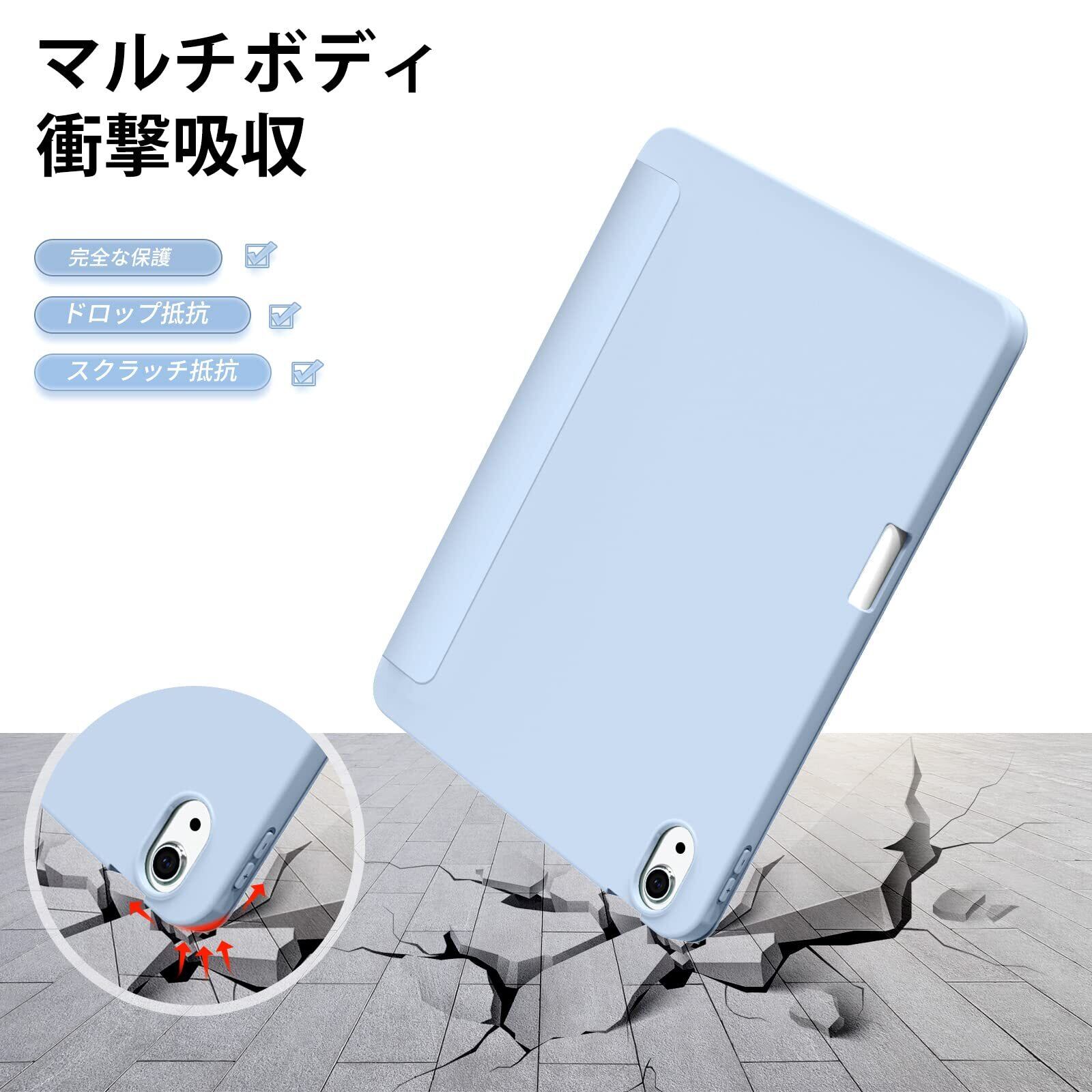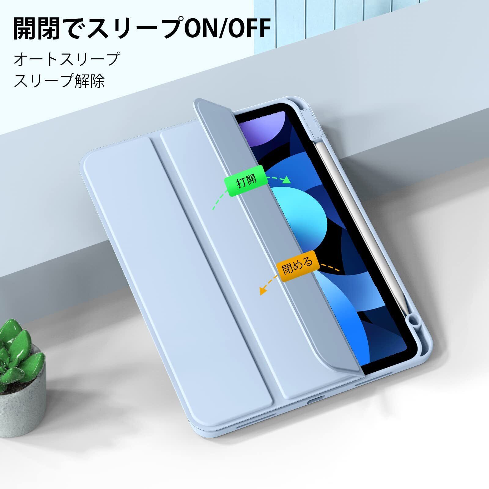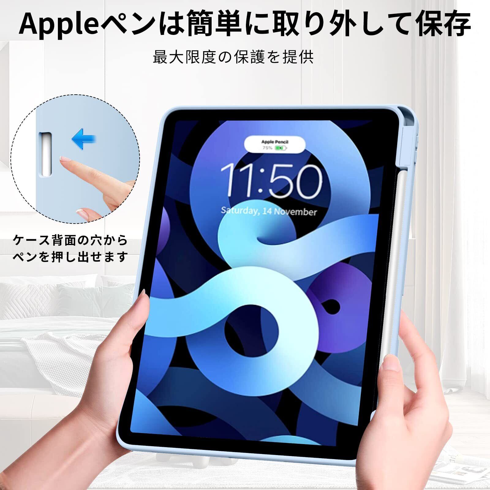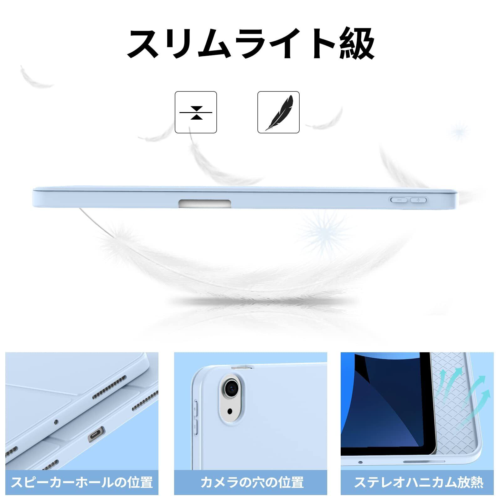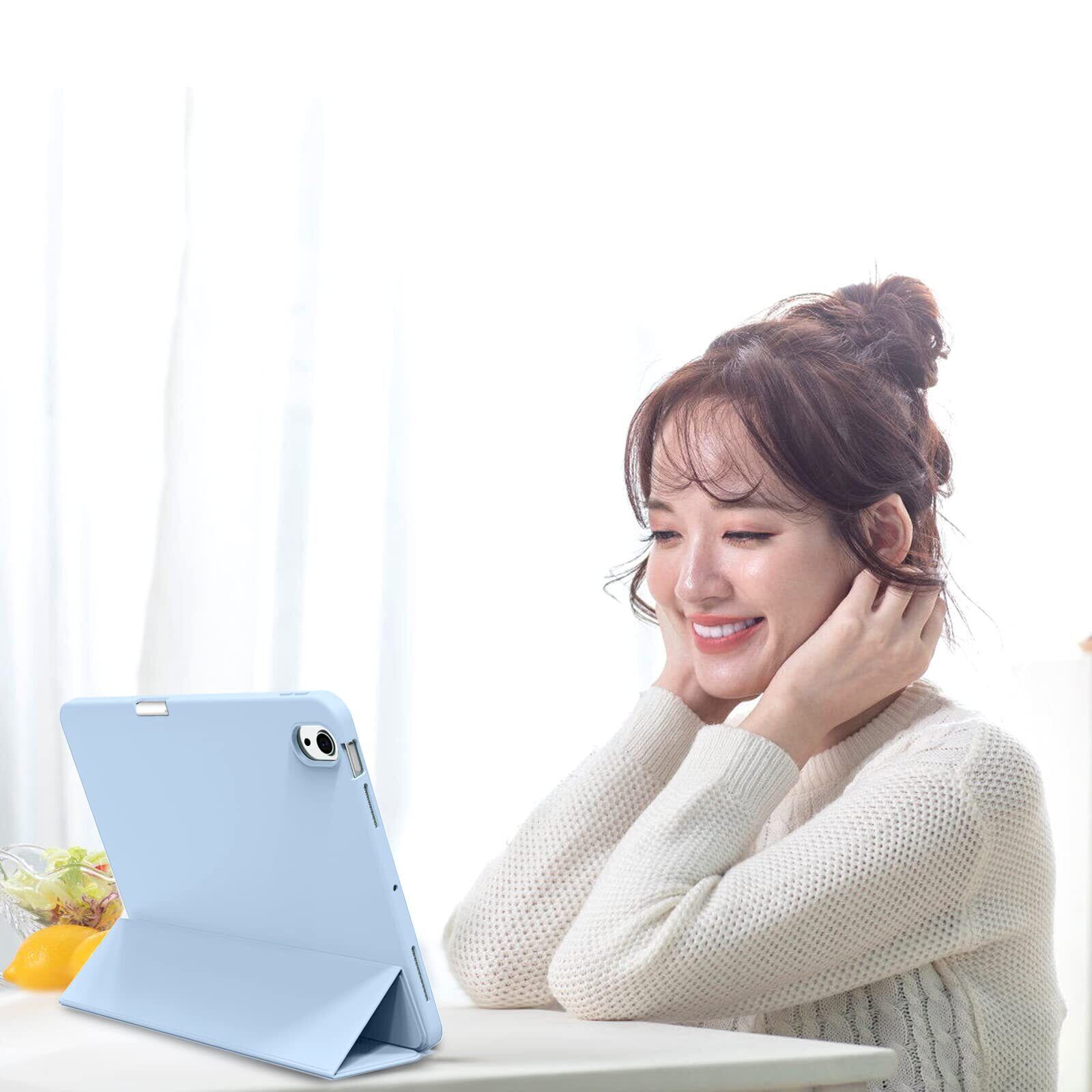 KenKe iPad Air 11インチ ケース (M3/M2、2025/2024) iPad Air 第5/4世代 ケース 2022/2020発売 10.9インチ 軽量 柔らかいシリコン TPU材質 ペン収納 カバー 3段階折り畳み可 スタンド マグネット付き 自動スリープ機能 Apple Pencil 収納可能 ライトブルー