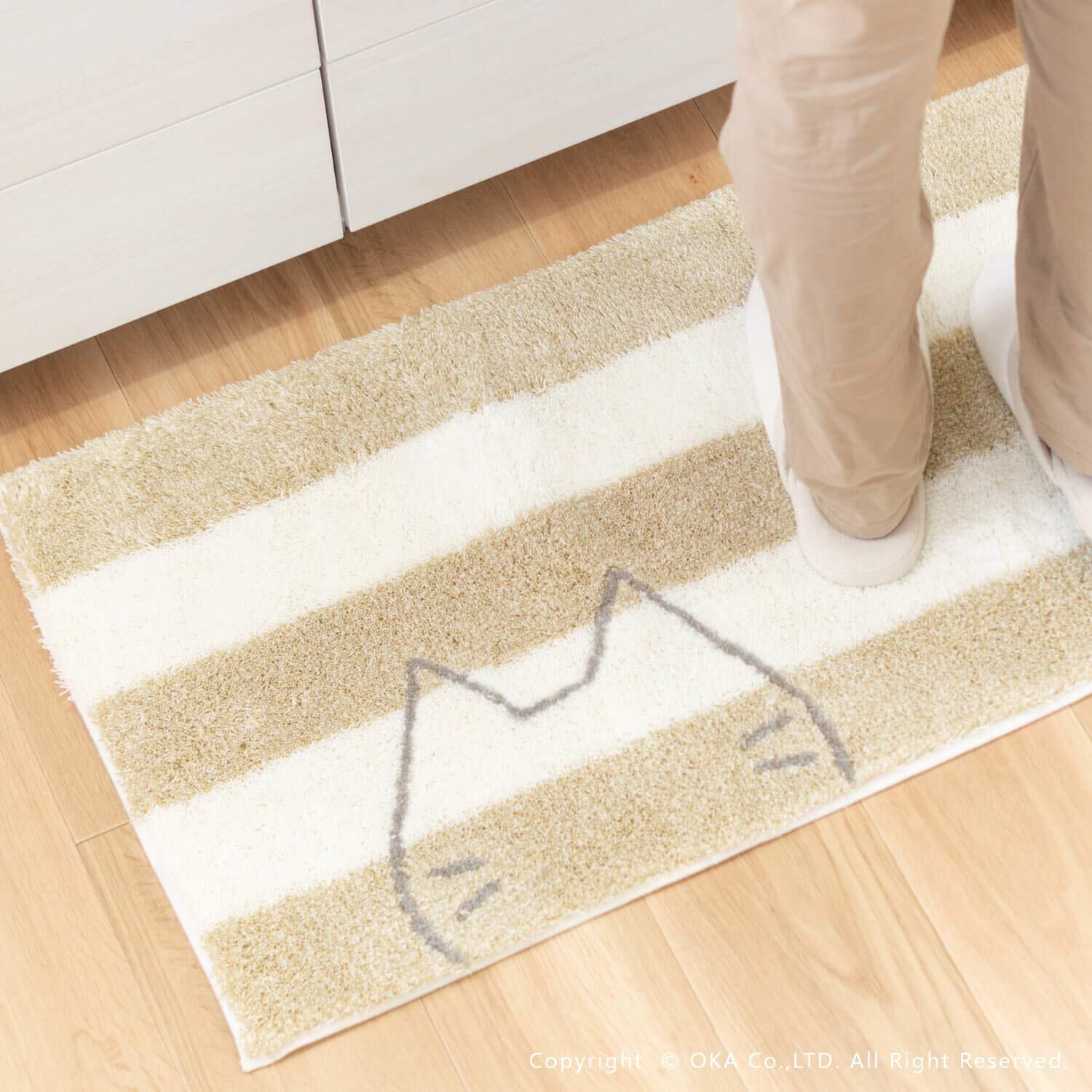 オカ うちねこ キッチンマット 約45×120cm (ホワイト)
