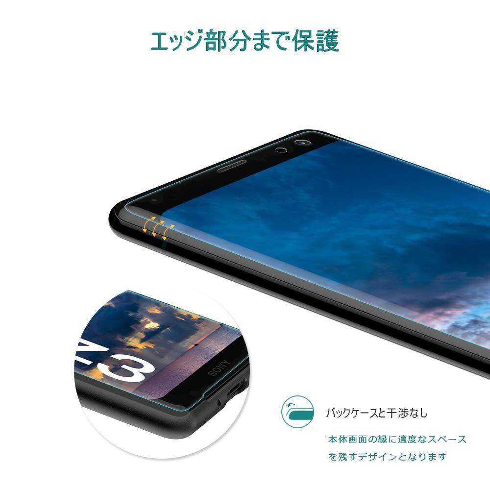 【実機確認 ピッタリとしたサイズ】液晶画面をエッジ部分まで全面保護できながら、xz3ケースを装着しても干渉なし。(サイズ説明:バックケースを装着する際に干渉にならないと考慮しており、フィルムはXperia XZ3本体画面の左右の縁に適度なスペースを残すデザインとなります。図2をご参考くださいませ。)