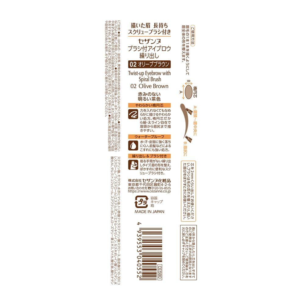 セザンヌ ブラシ付アイブロウ繰り出し 02 オリーブブラウン 0.23g 繰り出しタイプ ウォータープルーフ グラム (x 1)