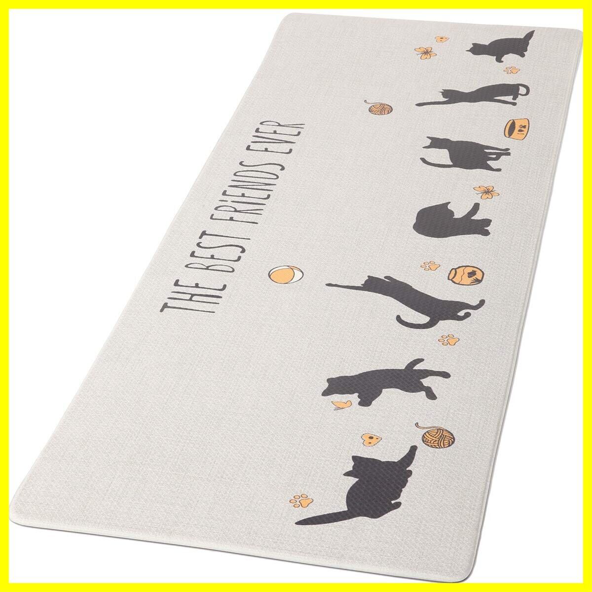 Ashmore キッチンマット 拭ける台所マ ット ずれない PVCロング床マット 撥水 おしゃれ 滑り止め 抗菌 防炎 厚さ10mm お手入れ簡単 約45cm*120cm 猫