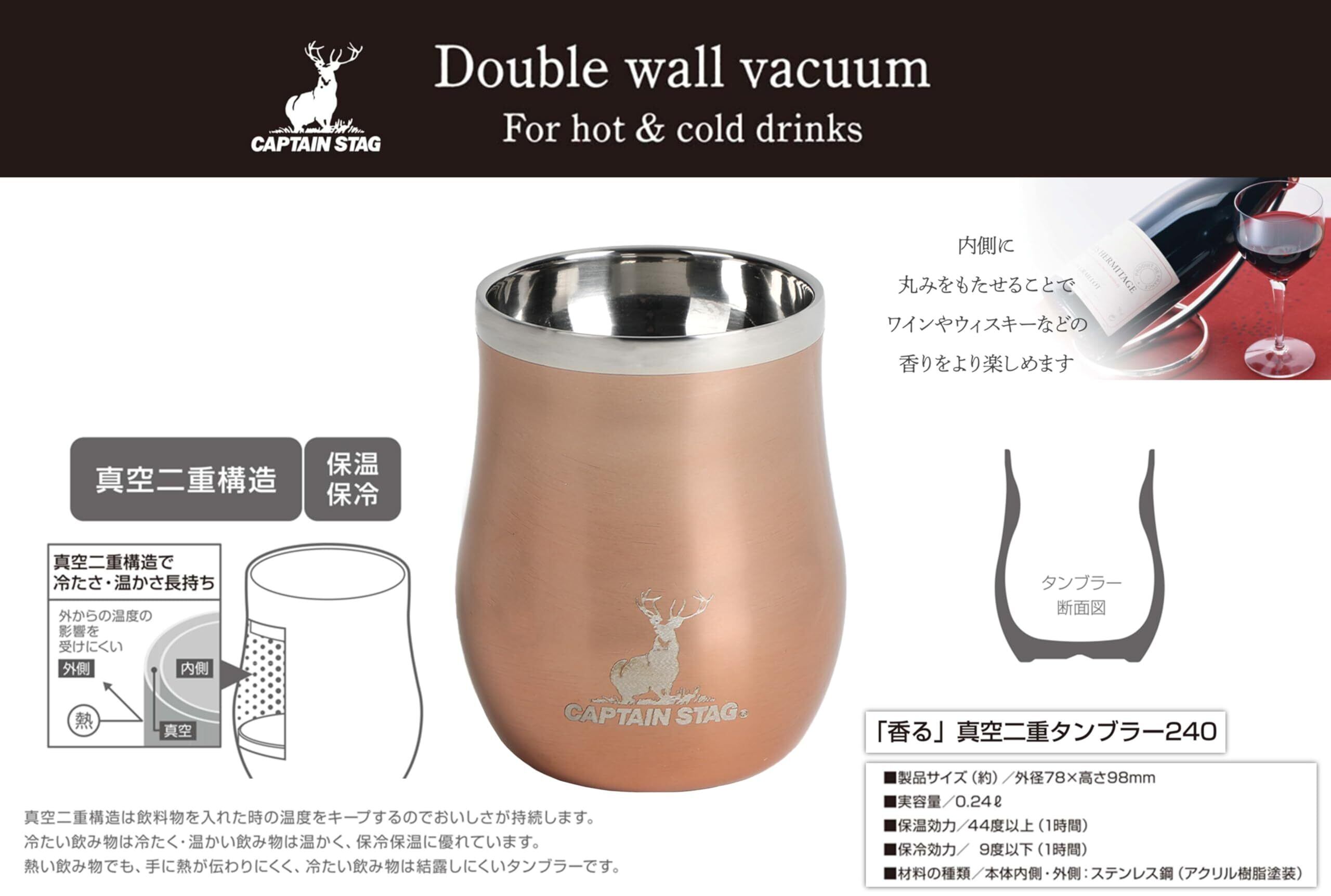 キャプテンスタッグ(CAPTAIN STAG) アウトドア コップ マグカップ マグ カップ タンブラー 香る 真空二重タンブラー 240ml 保温保冷 ステンレス製