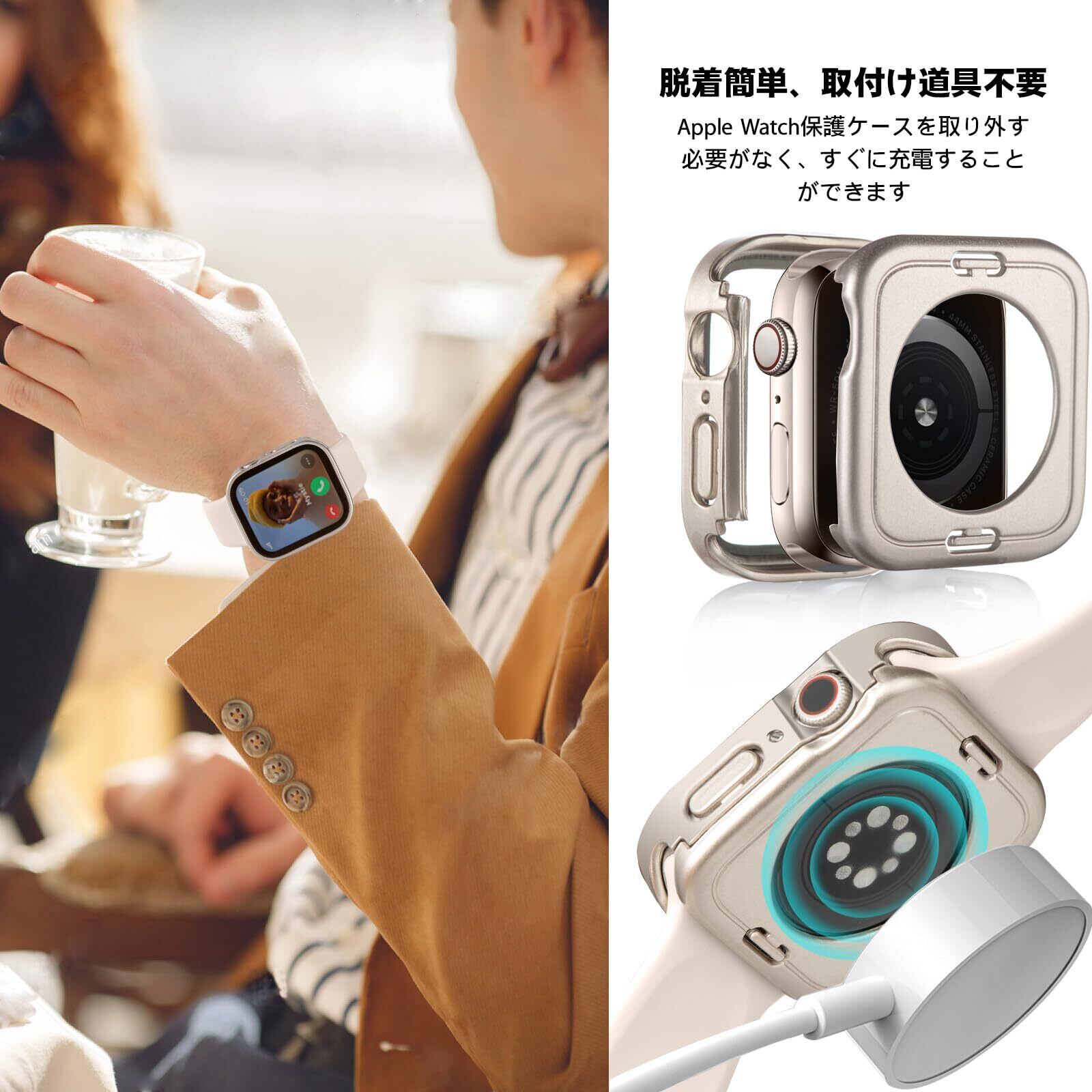 【装着簡単】:取付け道具不要。簡単に取り付け・取り外すApple Watch カバーです。アップルウォッチのボタンの丸部分の精密穴を通してからウォッチの本体に取り付けます。または逆の手順でケースを取り外れます。このApple Watch ケースを装着してもタッチ操作や充電などを邪魔になく操作できます。