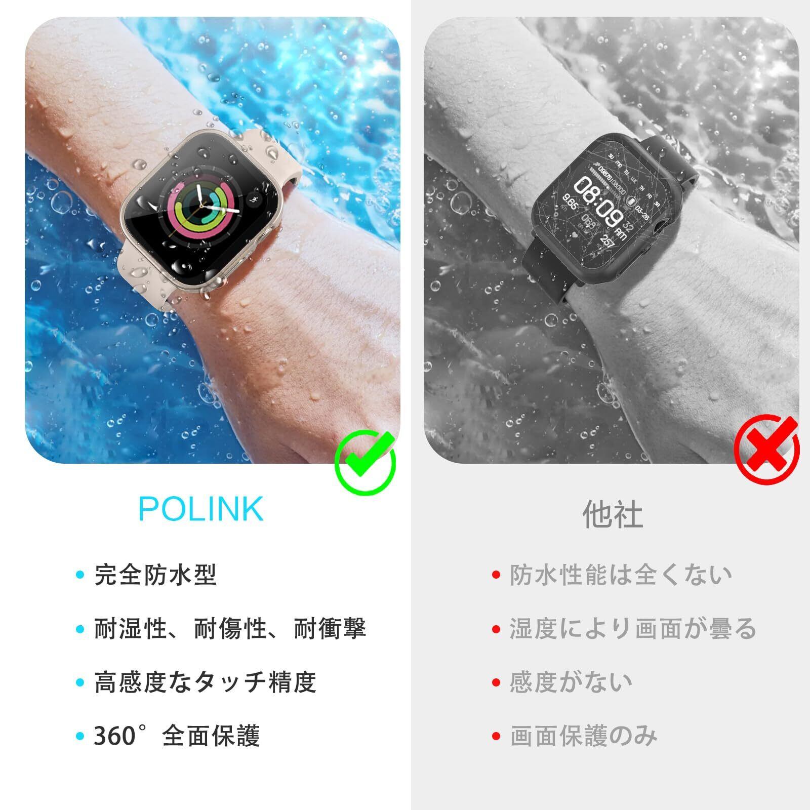 【2in1保護設計】POLINK 対応 アップルウォッチ カバー Series 10/9/8/7/SE/6/5/4 40mm PC素材 強化ガラス 対応 Apple Watch カバー防水 一体型 新デザイン 3D直角エッジ超薄型 高耐久 耐衝撃 高透過率 指紋防止 対応 Apple Watch ケース 全面保護 スターライト