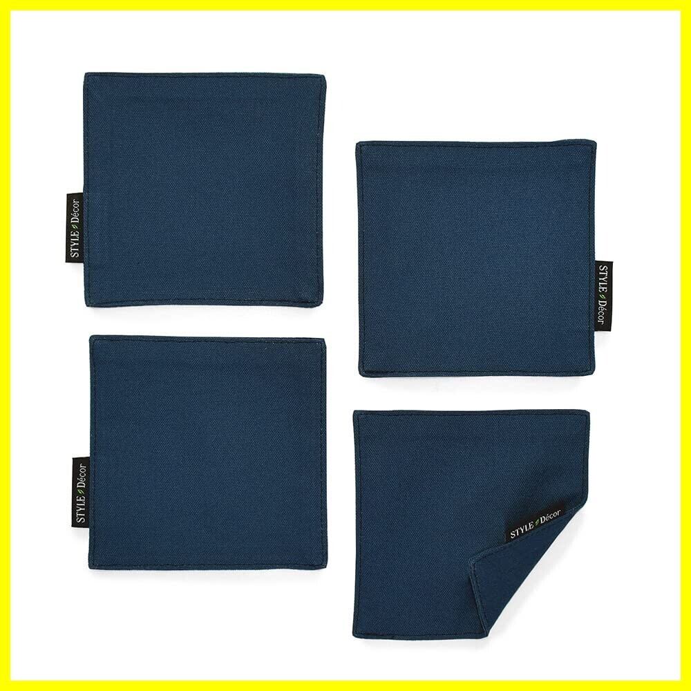 スタイルデコール(STYLE Decor) コースター リバーシブル おしゃれ 布 4枚セット 洗える 北欧 無地 ネイビー ブルー W3002720