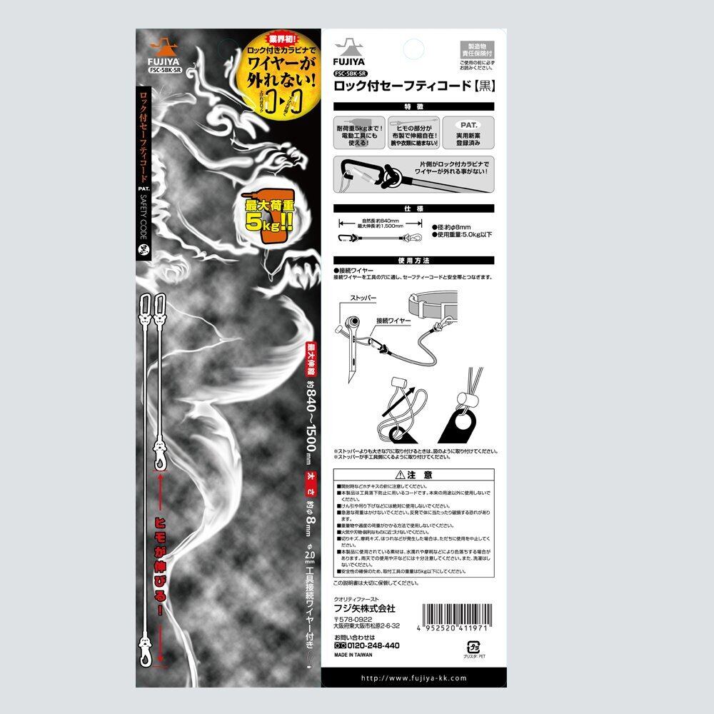 [フジ矢] Fujiya ロック付き布製セーフティコード (ロック付カラビナ型) 5kgタイプ 黒 FSC-5BK-SR