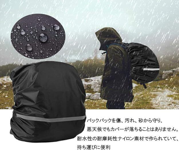 [AZUSA] リュックレインカバー 登山 通学 通勤 アウトドア 防水カバー 軽量、自転車などに ナイトセーフティ 反射ストリップ 雨、雪、湿気や汚れからバックパックを保護 バックパック用レインカバー 耐摩耗性 撥水 ザックカバー
