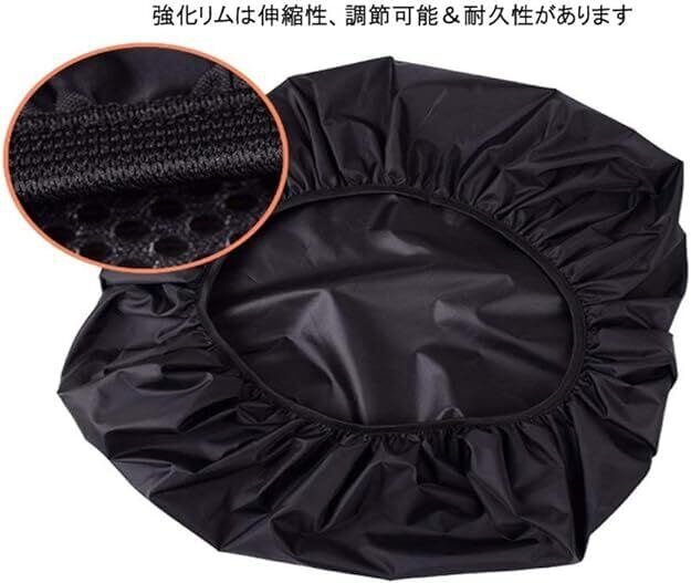 カラー:ブラック Mサイズ:26-40L Lサイズ:41-55 XLサイズ:56-70L 素材構成: ナイロン ポリエステル 耐久性があり、軽量でよく水をはじくようになっています。 反射材付きで暗い夜道でも自分の居場所を知らせることができるリュックカバーです。 使わないときは折りたたむことでコンパクトのなるのでリュックの中に入れていても邪魔になりません。 カバーの周りに伸縮性のある素材を使用しているので様々なサイズのリュックに使用できます