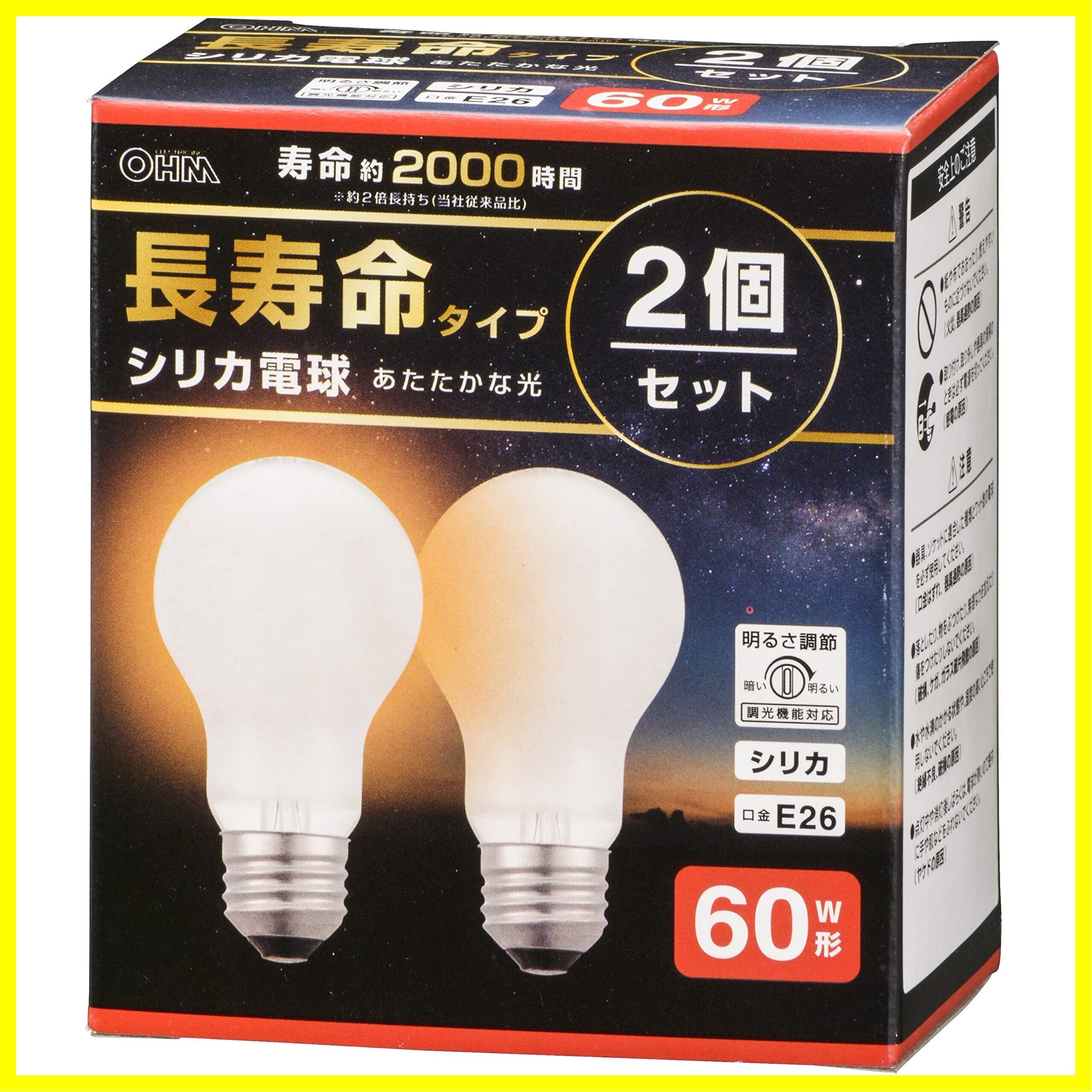 【 特 長 】 ◆口金E26、60W形白熱シリカ電球 長寿命タイプ ◆光源色は電球色 ◆調光(明るさ調節)機能対応 ◆2個セット