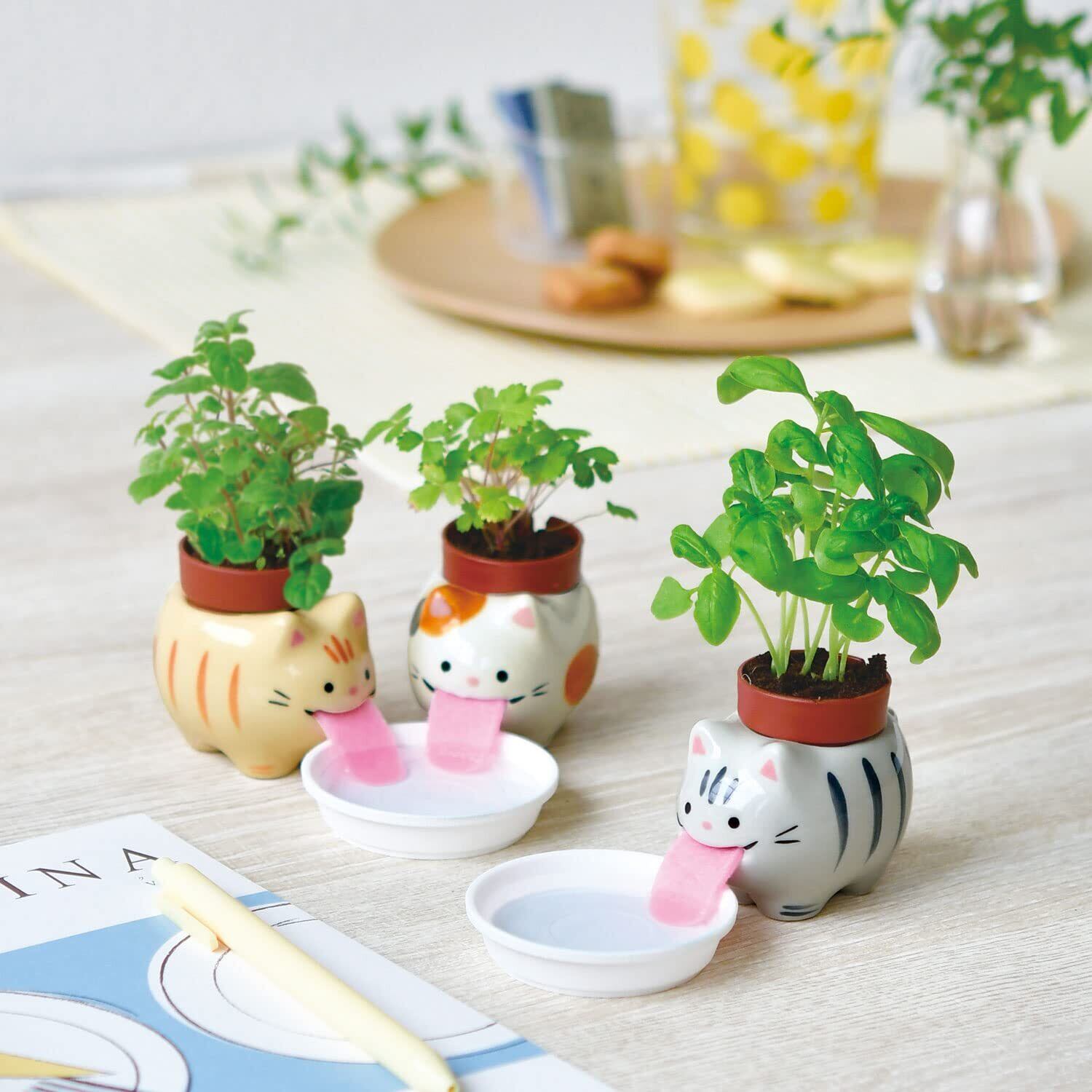 聖新陶芸 家庭菜園 簡単 栽培キット ワイルドストロベリー 室内 香草 野菜 栽培セット 約7cm ぺロポンキャッツ ミケネコ 母の日 プレゼント 誕生日 GD-94901