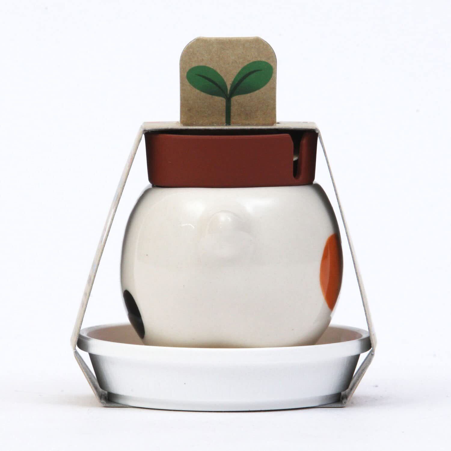セット内容:ポット(陶器),インナーポット,受け皿,土,種,説明書×各1
