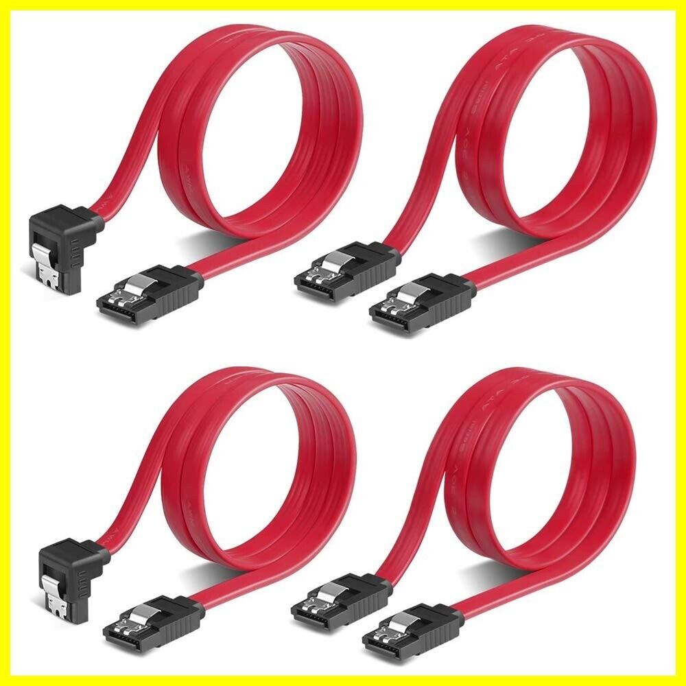 SATA 3ケーブル シリアルケーブル 4本セット(ストレート型+下L型) シリアルATA3ケーブル 抜け落ち防止 ハードディスク/光学ドライブ 最適 ラッチ付 50cm HDD SSD S-ATA III データ コード レッド