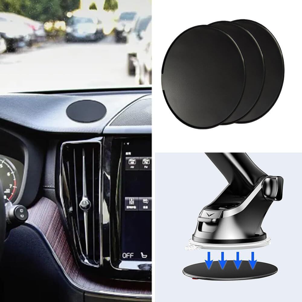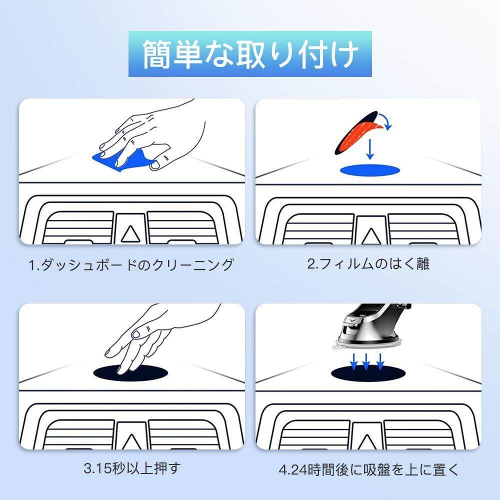 【簡単な取り付け】この車の吸盤基台ベースの取り付けは非常に簡単です。設置したい位置に置き、3Mの両面テープで固定するだけです、24時間以上置きます、そうすることで粘着力が向上します。複雑な取り付け手順はなく、追加のツールや取り付け具は必要ありません。