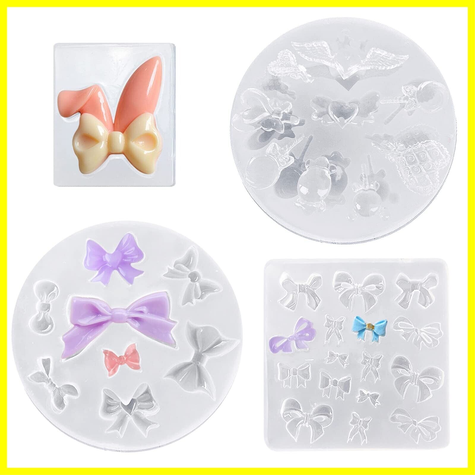 サムコス 4個セット リボン シリコンモールド リボン四角型 ちょう結び ウサ耳リボン キャンディー型 uvレジン 粘土 ソフトモールド DIY ペンダント イヤリング ヘアクリップ アクセサリー 樹脂工芸品 デコパーツ ハンドメイド素材 (R)