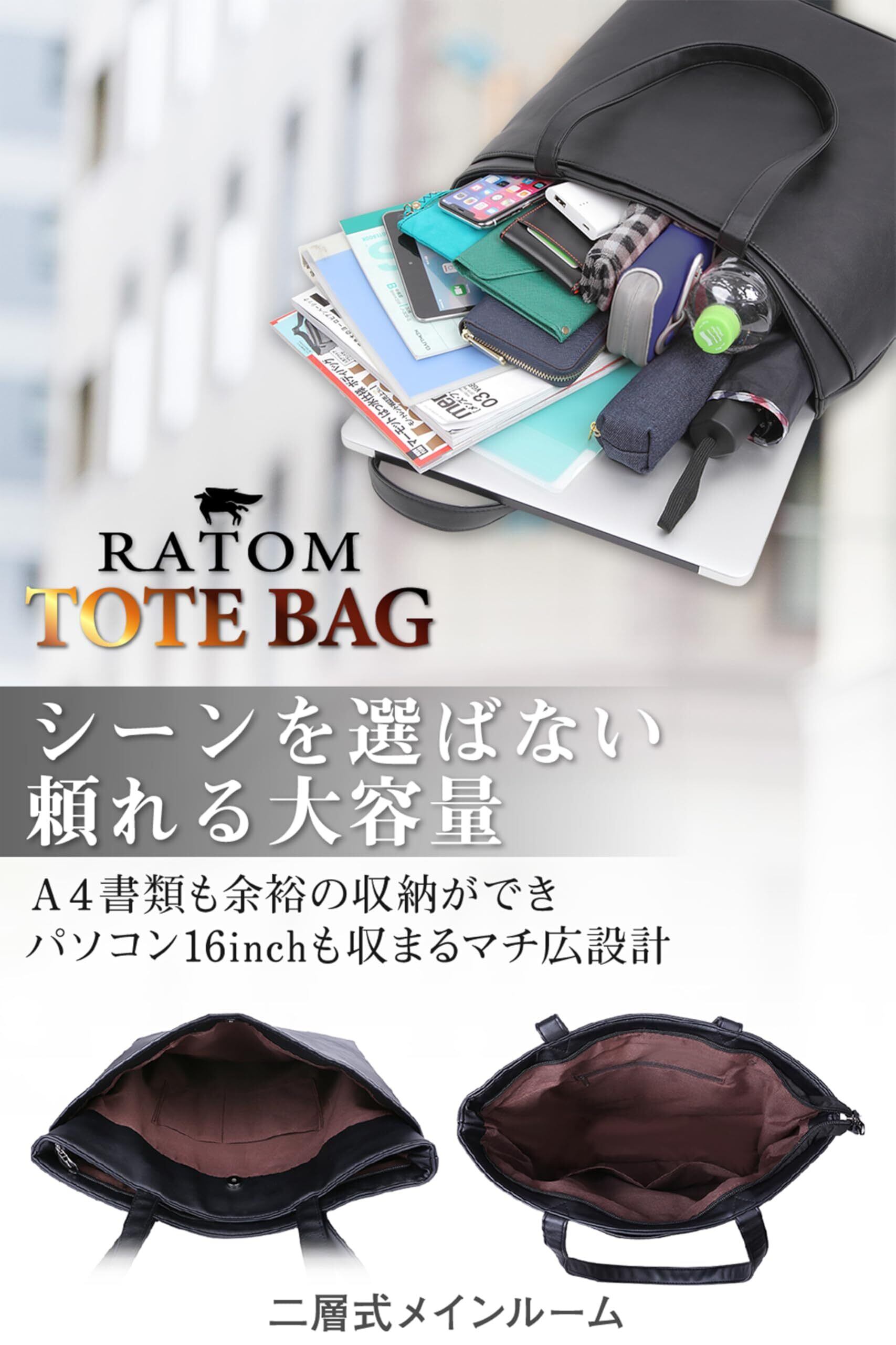 [RATOM] トートバッグ メンズ 大容量 ビジネスバッグ バッグ カバン 洗練された上品な質感(ON/OFF兼用・自立型)