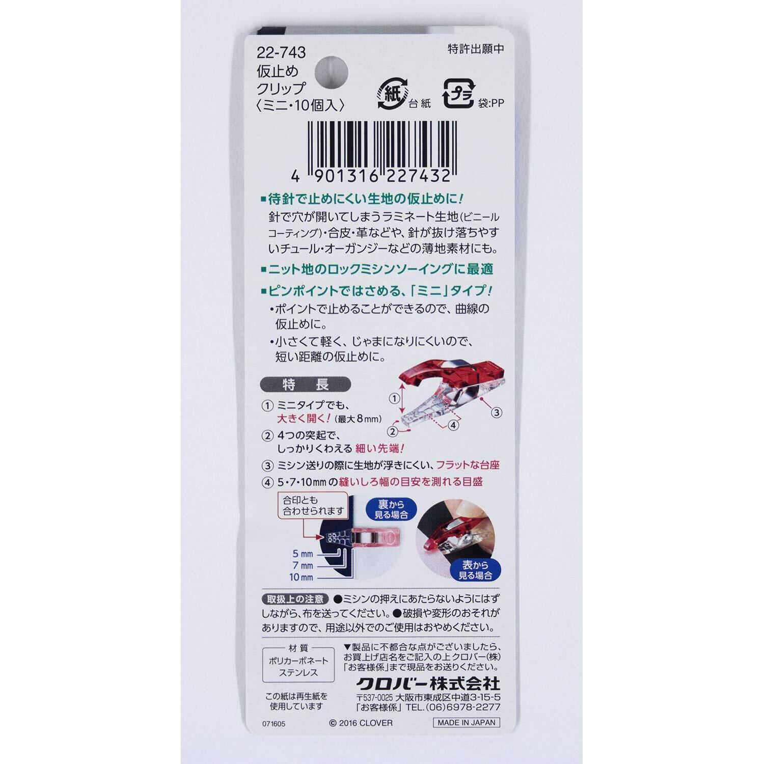 Clover ソーイング用品 仮止めクリップ ミニ 10個入り 22-743 ピンク