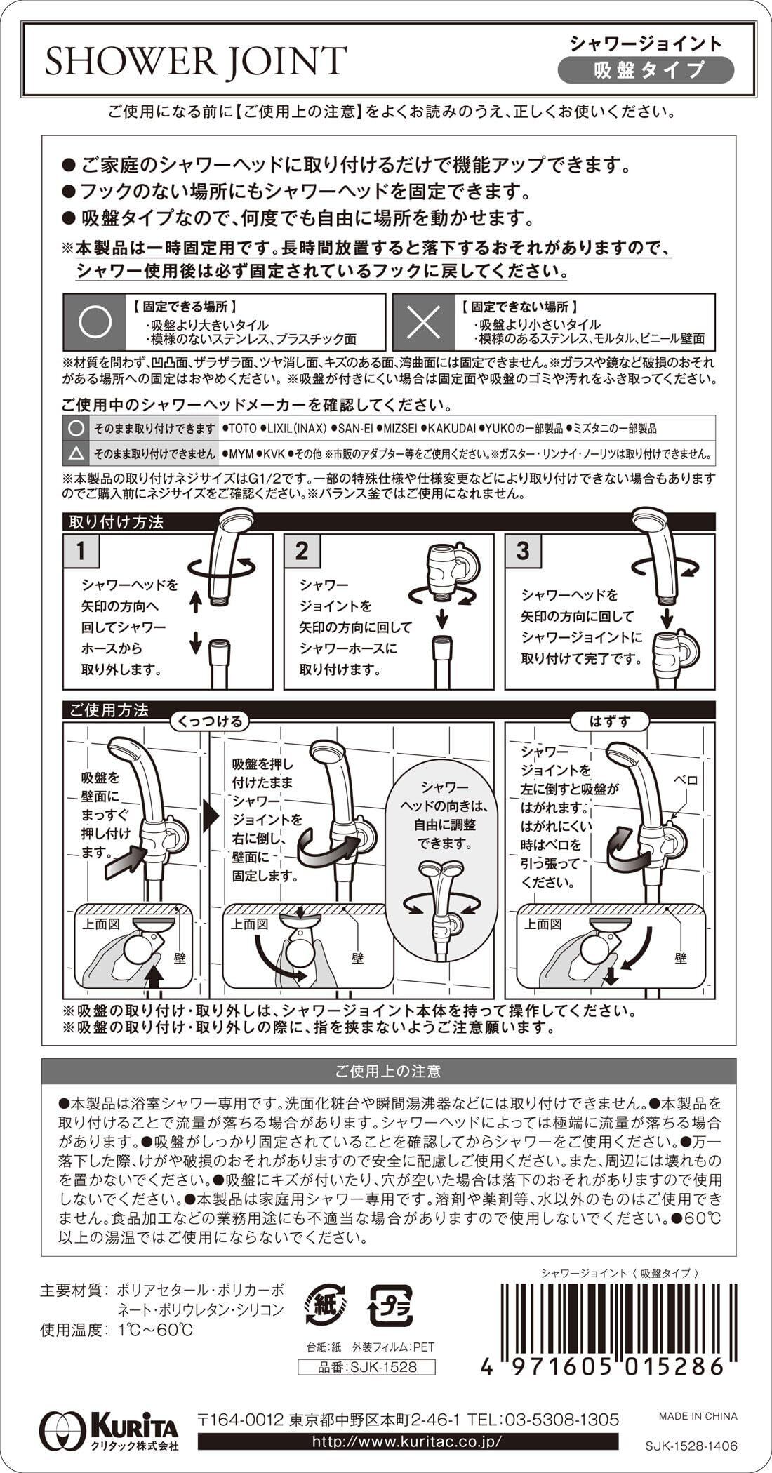 クリタック(Kurita) シャワーヘッド シャワージョイント 首振りタイプ SJSW-1529 4.1×4.1×6.1cm ホワイト