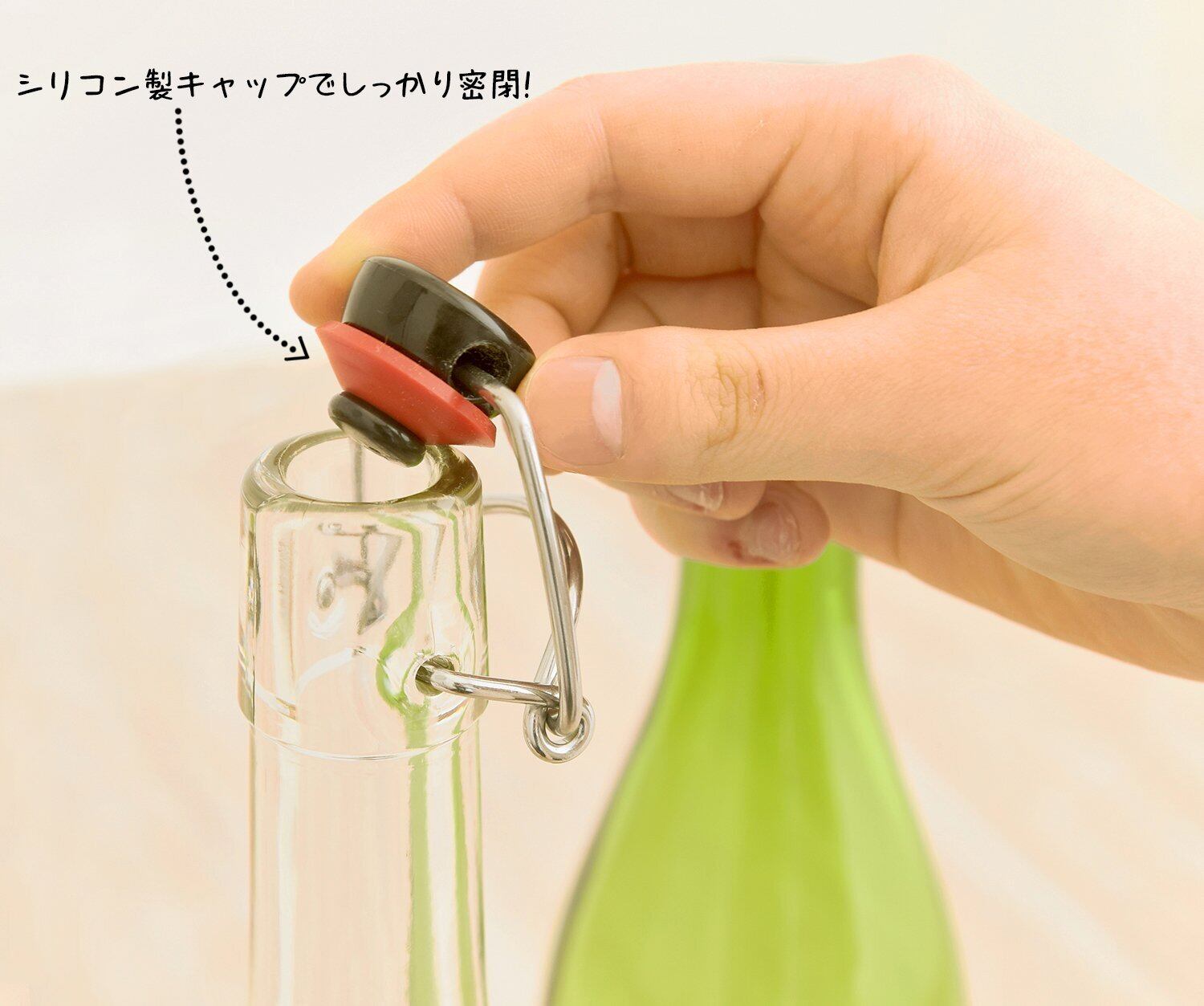 素材・材質:キャップ=ポリプロピレン/金具=ステンレス/パッキン=シリコン/ボトル=ソーダガラス