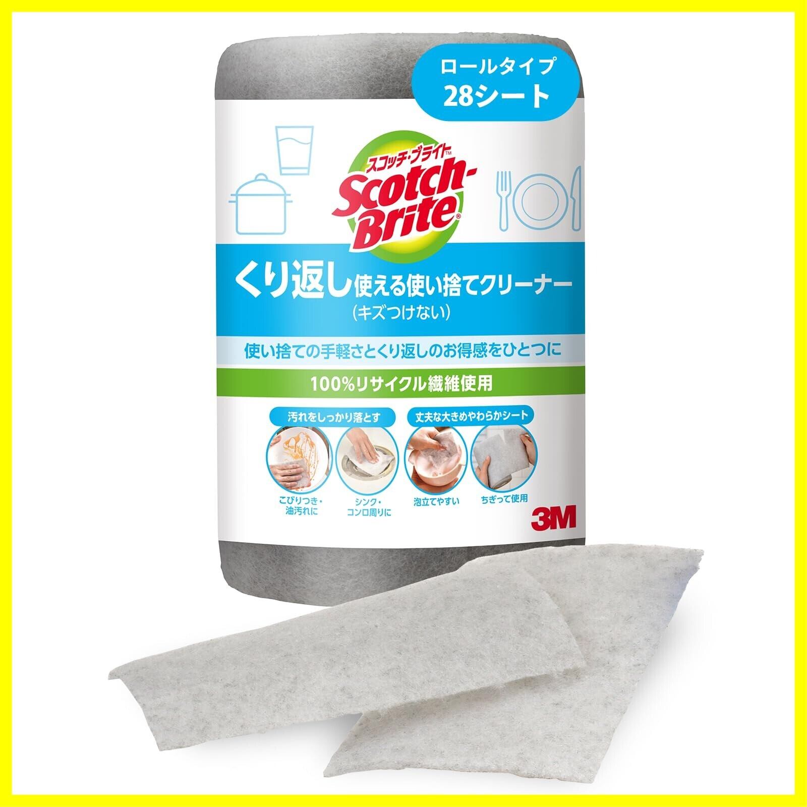 【必要な時にさっとお掃除】ロールからサッとちぎっていつでもお掃除可能。お皿の油汚れやこびりつきから、シンク・コンロ周りのお掃除にも。