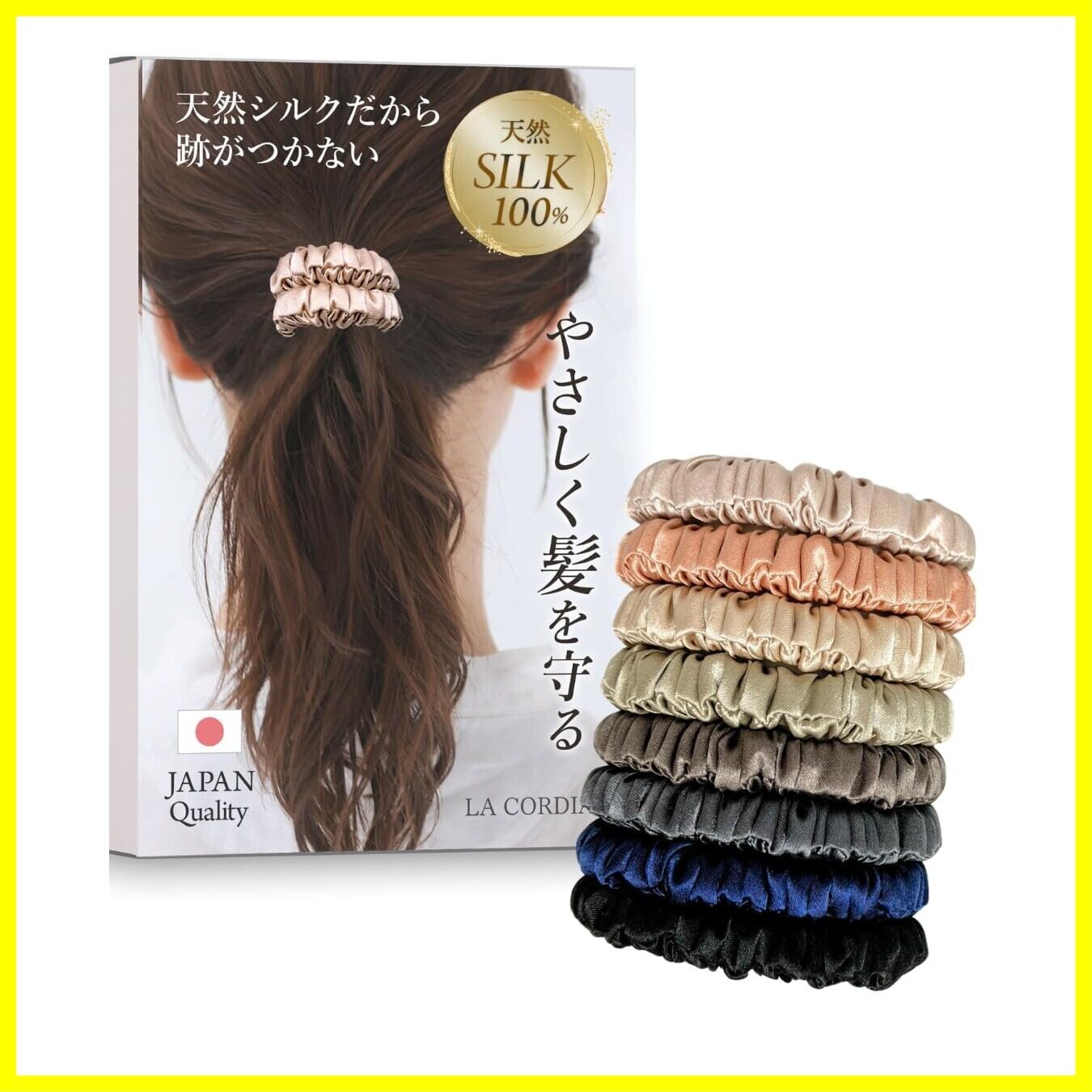【髪も喜ぶ シルク 100% 】 ヘアゴム あとがつかない 髪ゴム 《専門家監修》4点セット ゴム シュシュ 跡がつかない おしゃれ 細い 髪留め 大人 (8色セット)