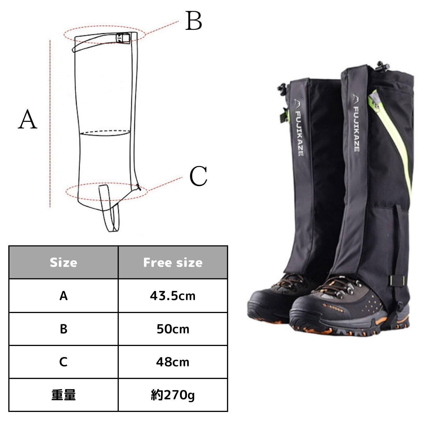 FUJIKAZE ロングゲイタースパッツ アウトドア ゲーター 登山 スパッツ 二重構造 防水通気 高耐久性 レッグカバー 軽量 トレッキング バイク 撥水 泥除け 砂よけ 富士登山対策 現場作業 脚カバー バックカントリー 収納袋付き