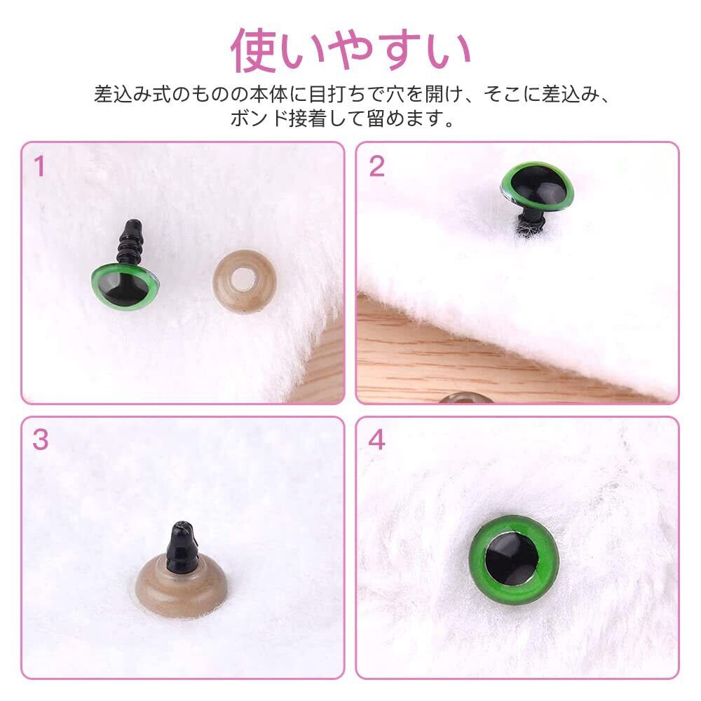 ✿【使いやすい】差込み式のものの本体に目打ちで穴を開け、そこに差込み、ボンド接着して留めます。使いやすく、様々人形、テディベアやぬいぐるみ,装飾などに適しています。