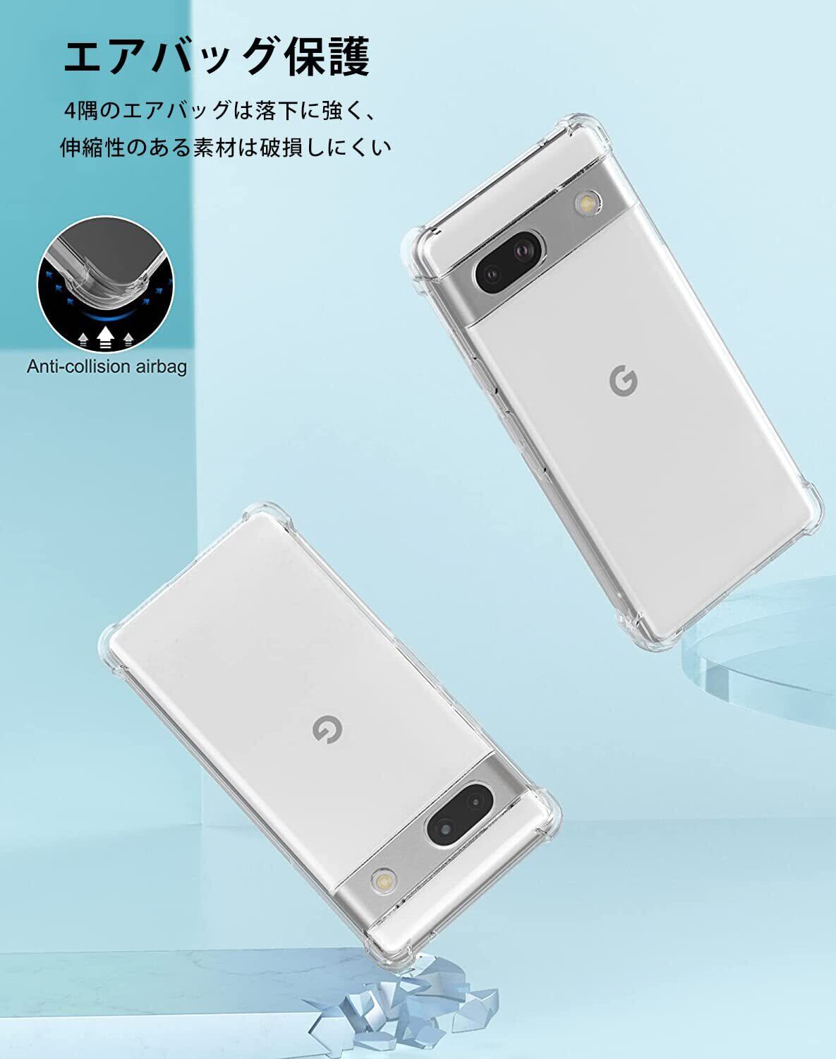 【衝撃吸収】 ゴムやシリコンのように柔らかいTPU素材使用!!本体に完全フィットし、全体を包み込むデザイン。保護ケースの四隅にエアショックパッドを設置して、スマートフォンが落下などの衝撃を吸収し、大切なpixel 7aを守ります