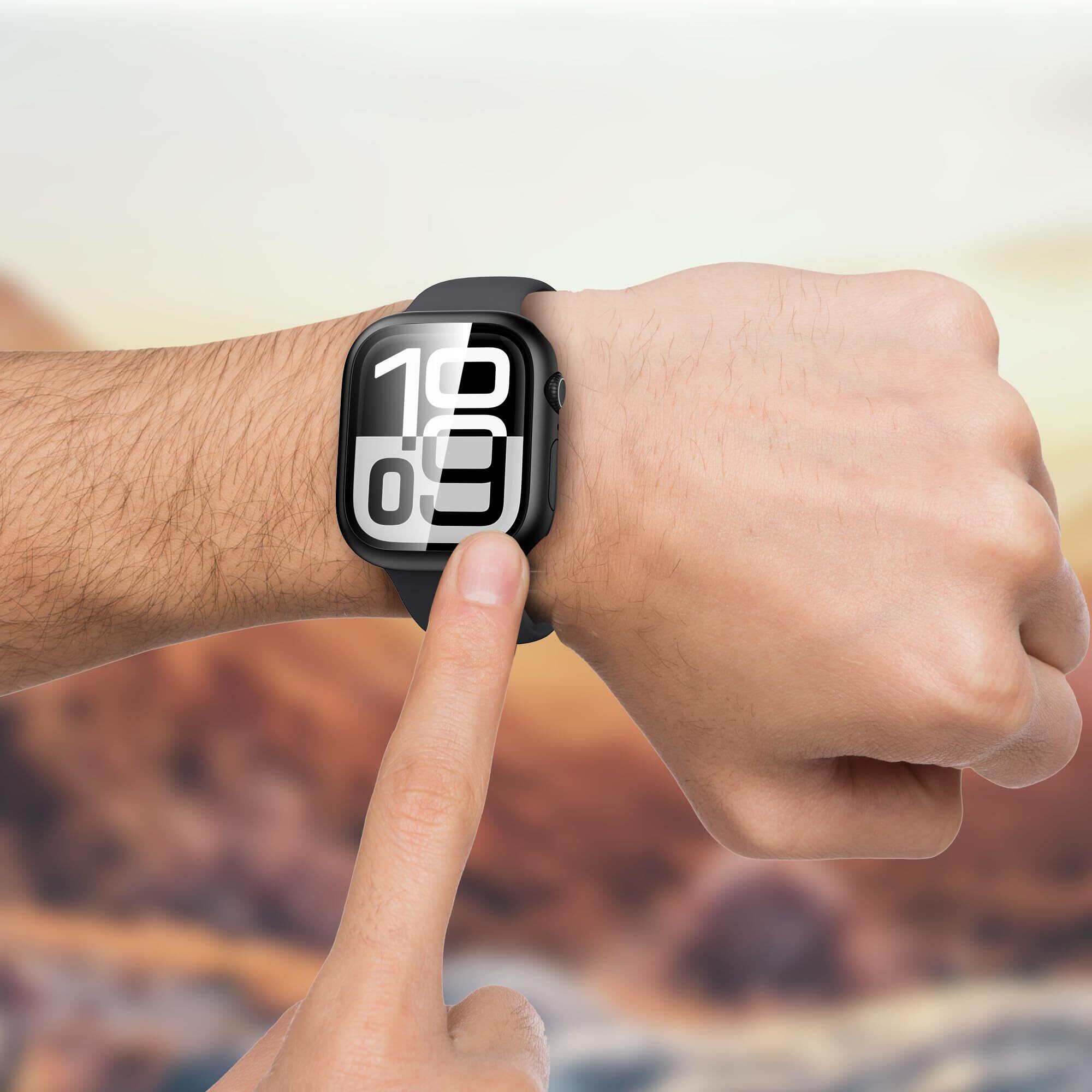 「Apple Watch Series 11/10 保護カバー+ガラスフィルム一体型」機能性とデザインを兼ね備えて、優れたApple Watch 防水ケースです。Apple Watch に合わせて丁寧に作られたフレームなので、違和感なくApple Watch 本体にジャストフィット!日常で起きる損傷リスクを高強度なフィルム層が防ぎ、液晶をキズから保護します。